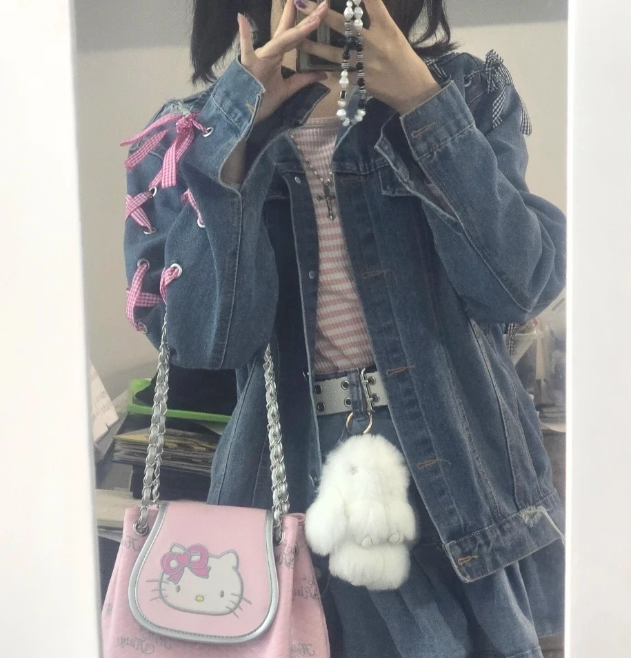 MOCOLOCO Denim Jacket with Ribbon Lacing