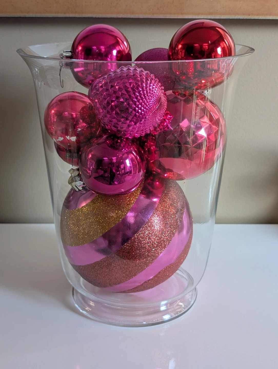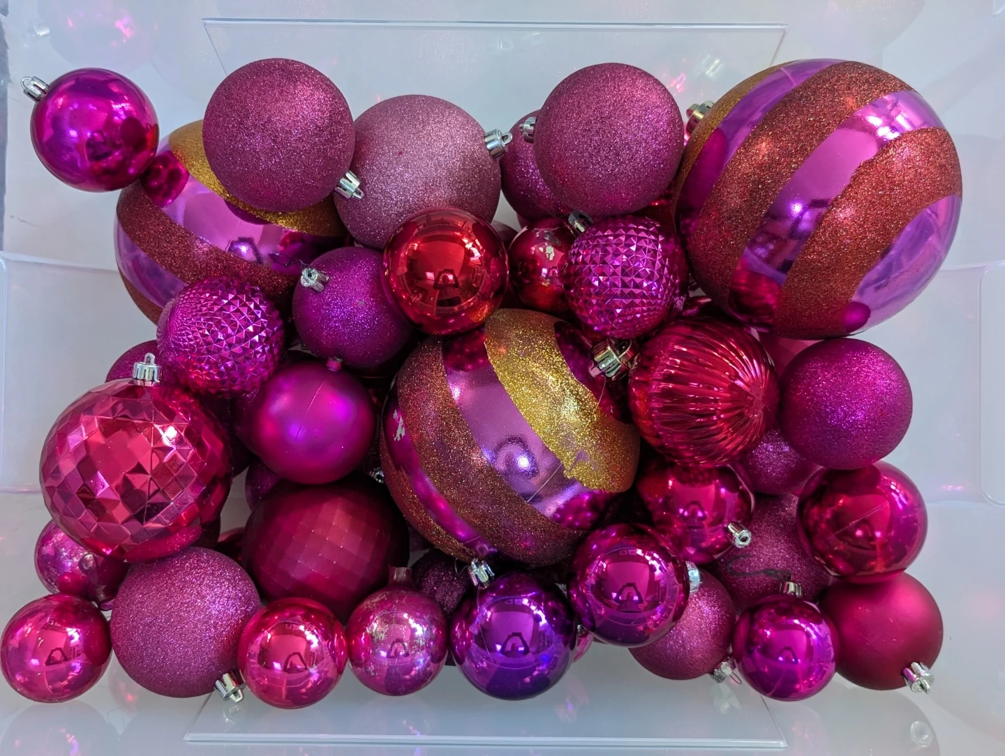 Beautiful collection of various sized PINK & RED ornaments used for decorating for both Valentine's Day & Christmas. Other suggested events are bridal showers, grad, or just a "Pink Party"! π©·