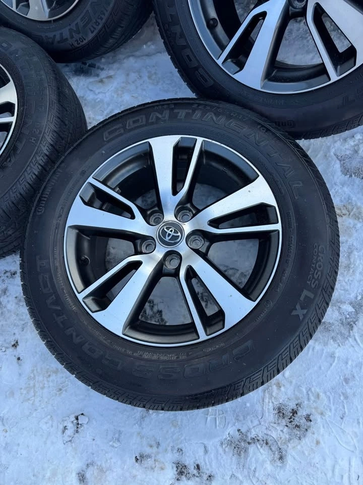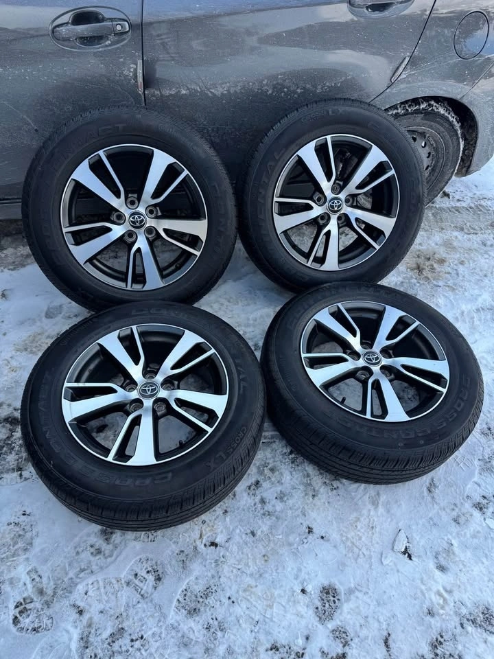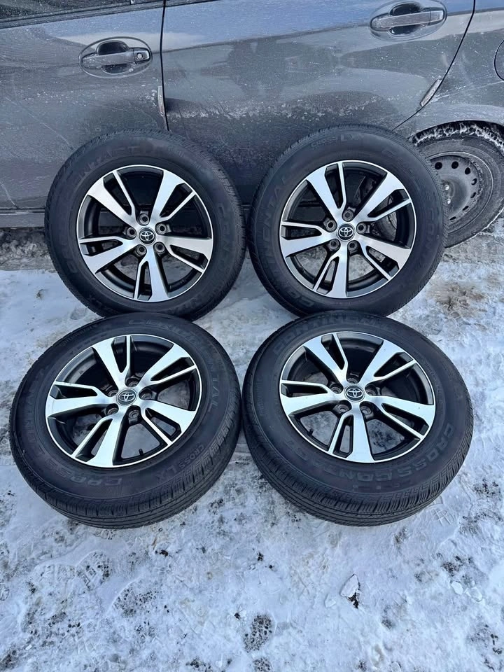 These tires fit 2006-2025 Toyota RAV4, 2011-2025 Toyota Sienna, 2007-2013 Highlander, or 2009-2016 Toyota Venza. The rims were used OEM on a 2018 Rav4. The tires have about 2-3 seasons of use left. All hold air, with no bends, cracks, or plugs. They are balanced and ready to mount. Center Bore: 60.1 mm. Bolt Pattern: 5x114.3 (5x4.5).