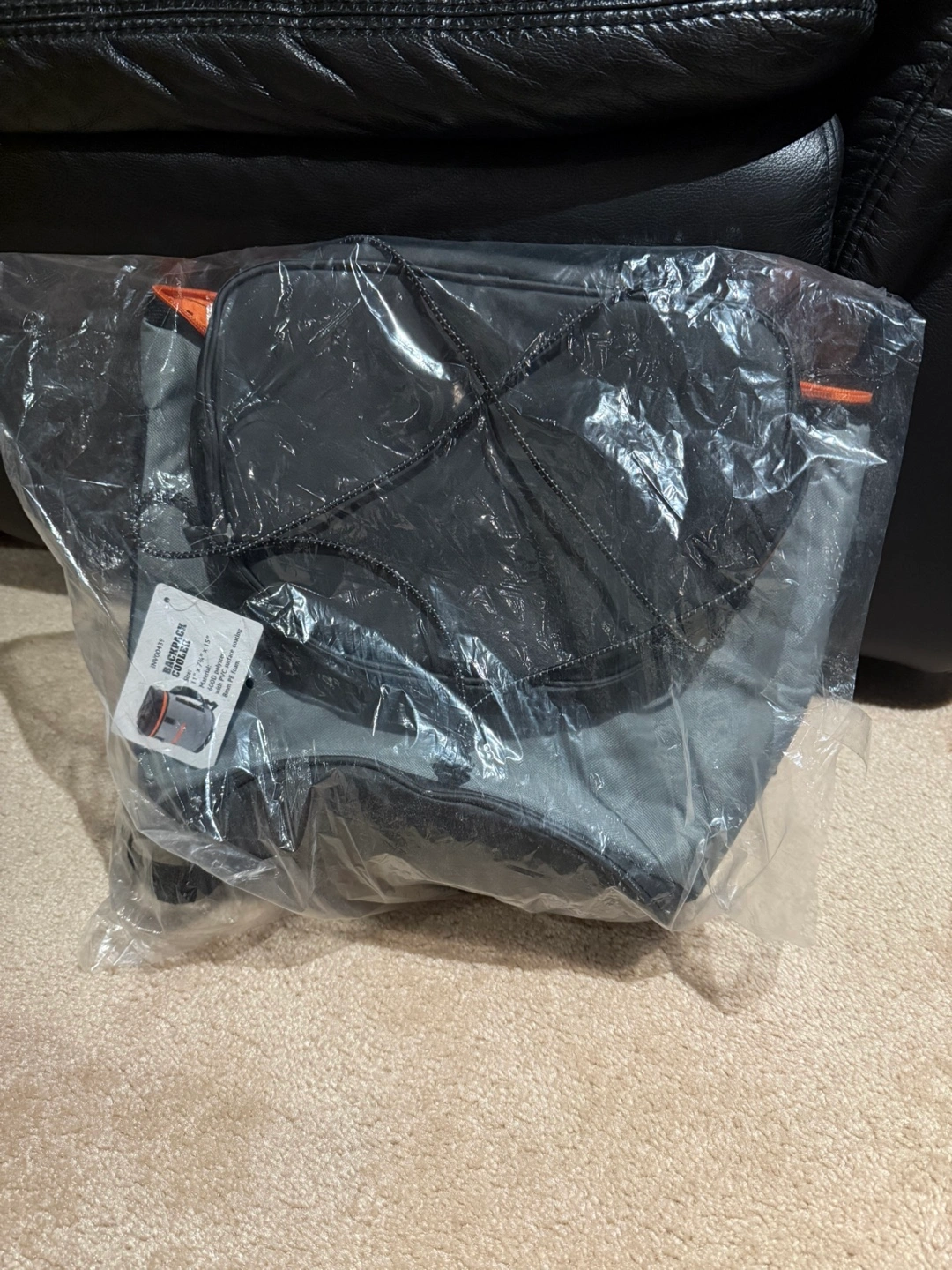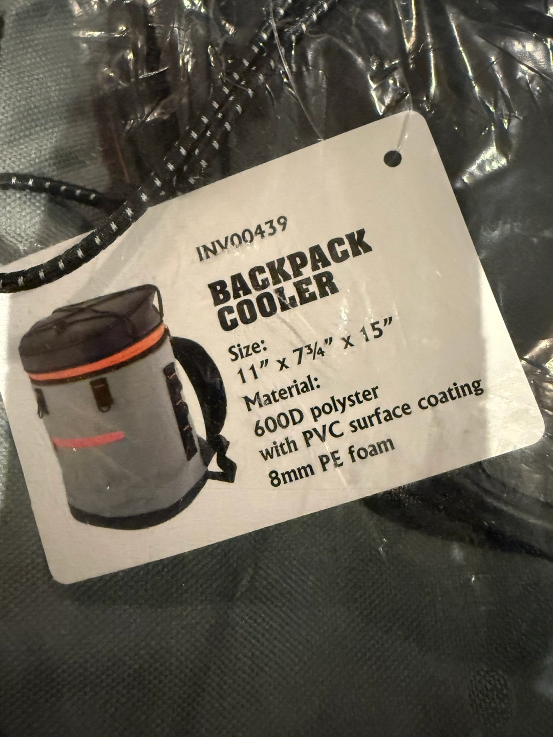Brand new backpack cooler. Grey and black. Measures 11" x 7 3/4" x 15". 600D polyester with PVC surface coating and 8mm PE foam. Still in original packaging.