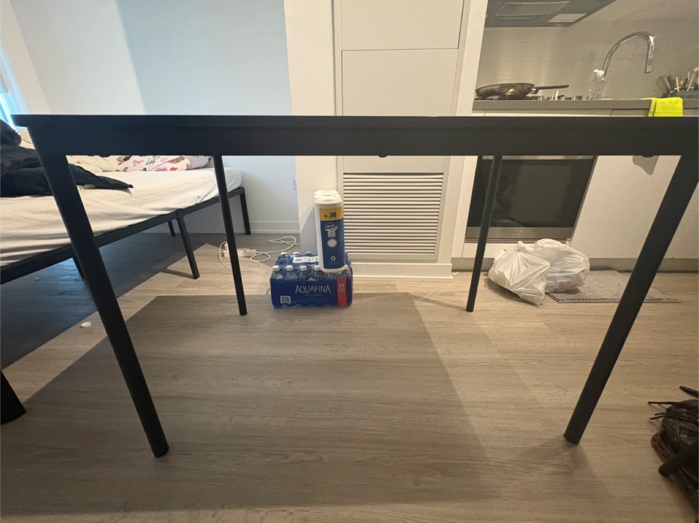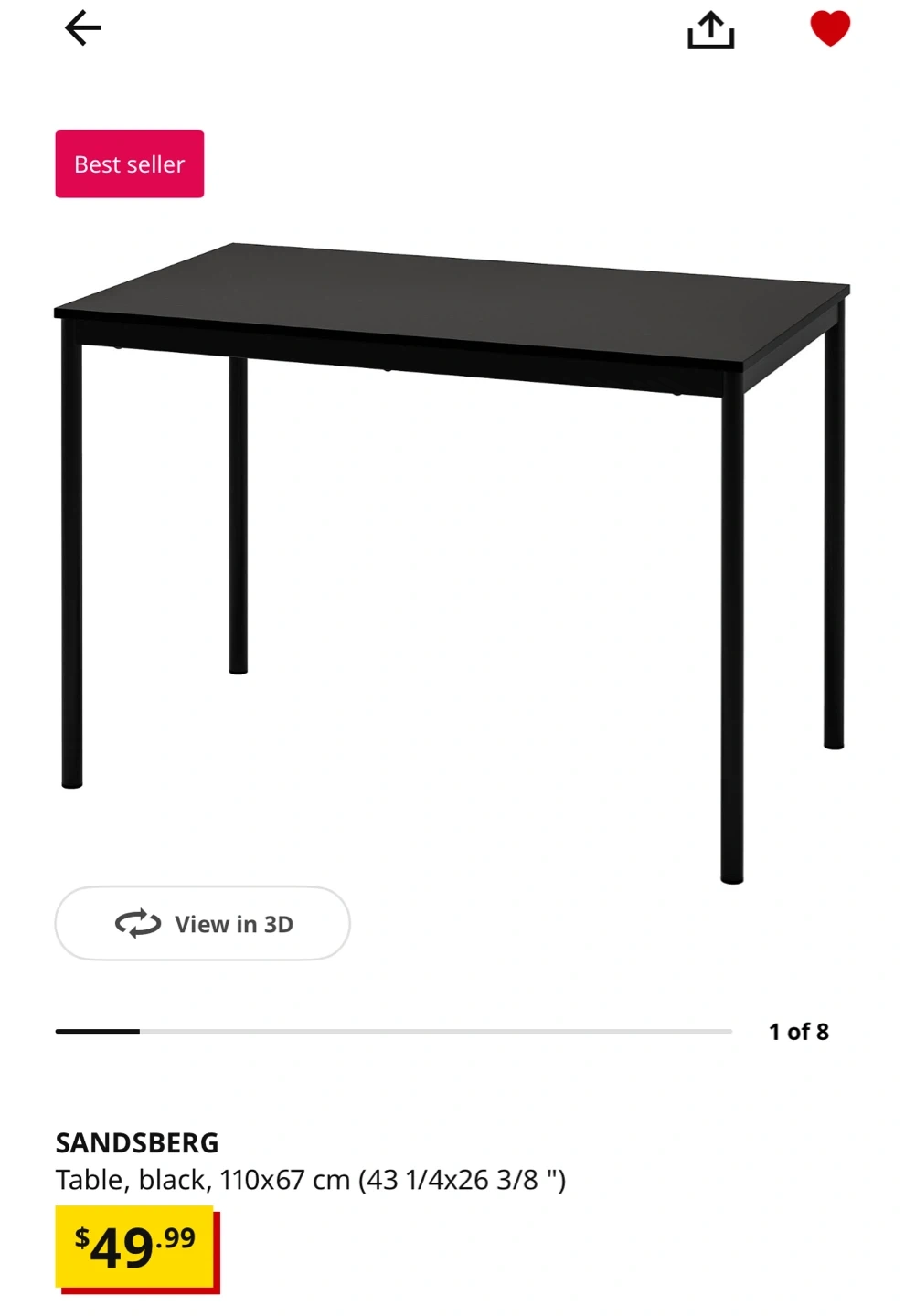 SANDSBERG table in black. Dimensions are 110x67 cm (43 1/4x26 3/8 "). It's a compact size, suitable for smaller dining areas or as a workspace