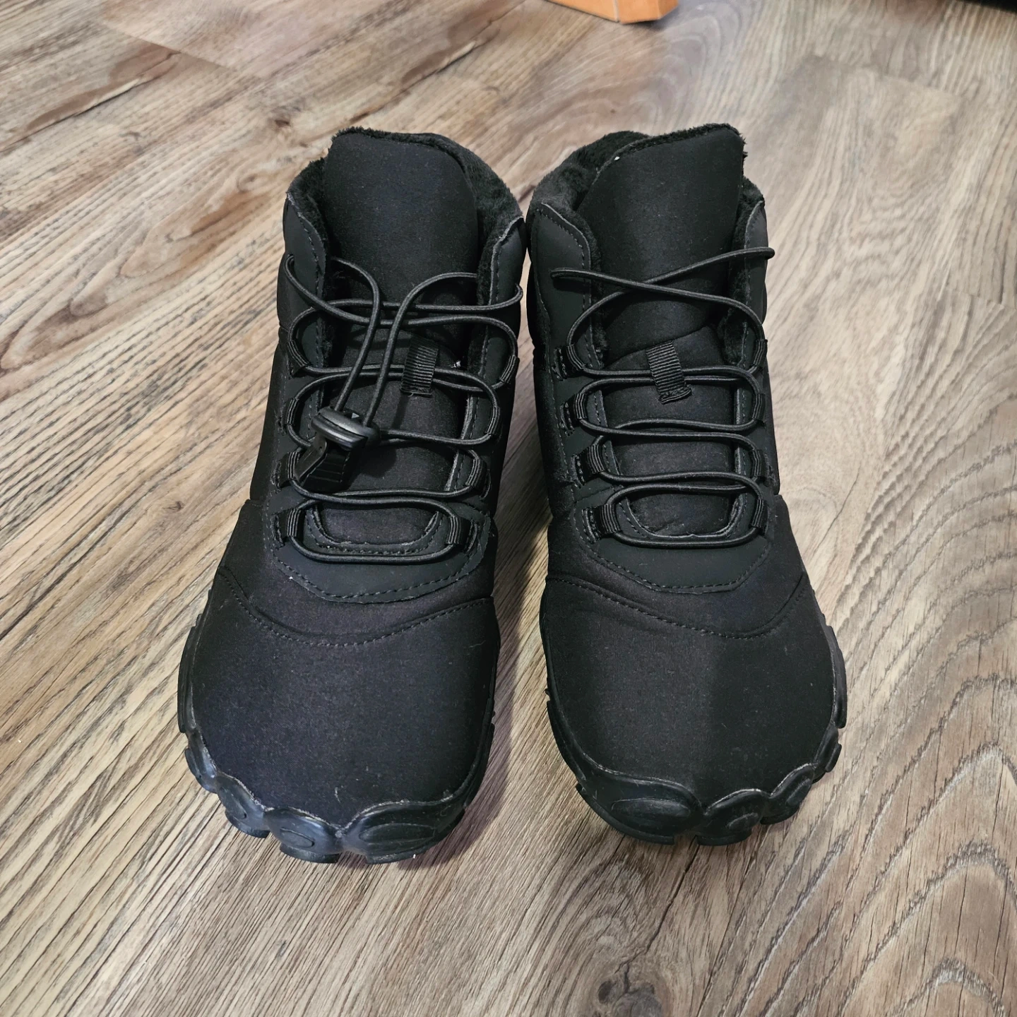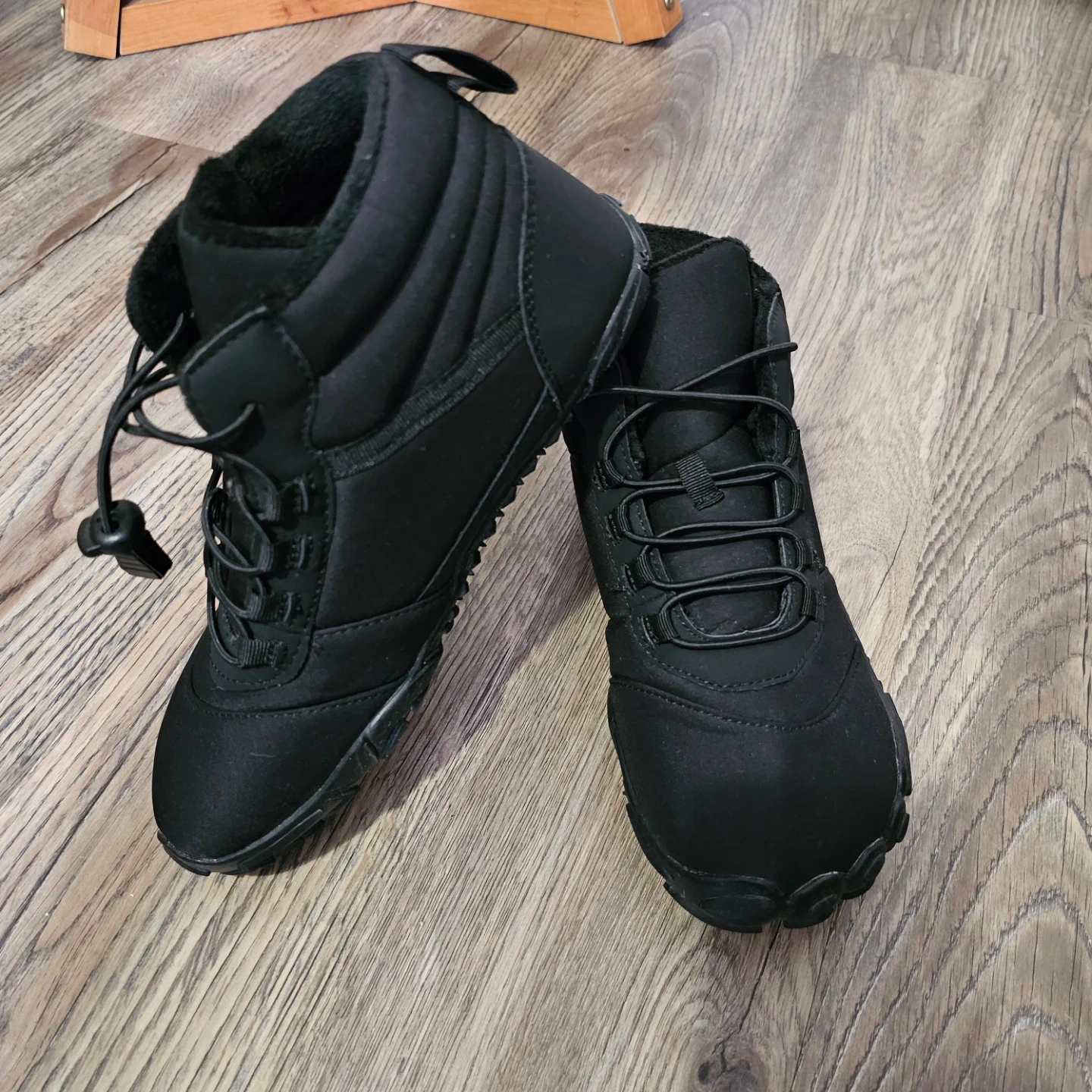 These black winter boots look super warm with their fuzzy lining. They have quick-lace toggles for easy on and off. They're great for cold weather adventures!