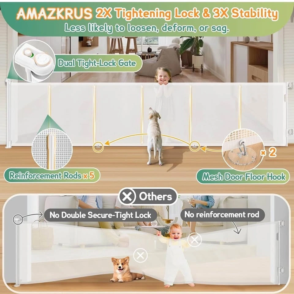• Reinforcement Rods: Unlike cheaper mesh gates, this one includes reinforcement rods to prevent pets or toddlers from crawling underneath.