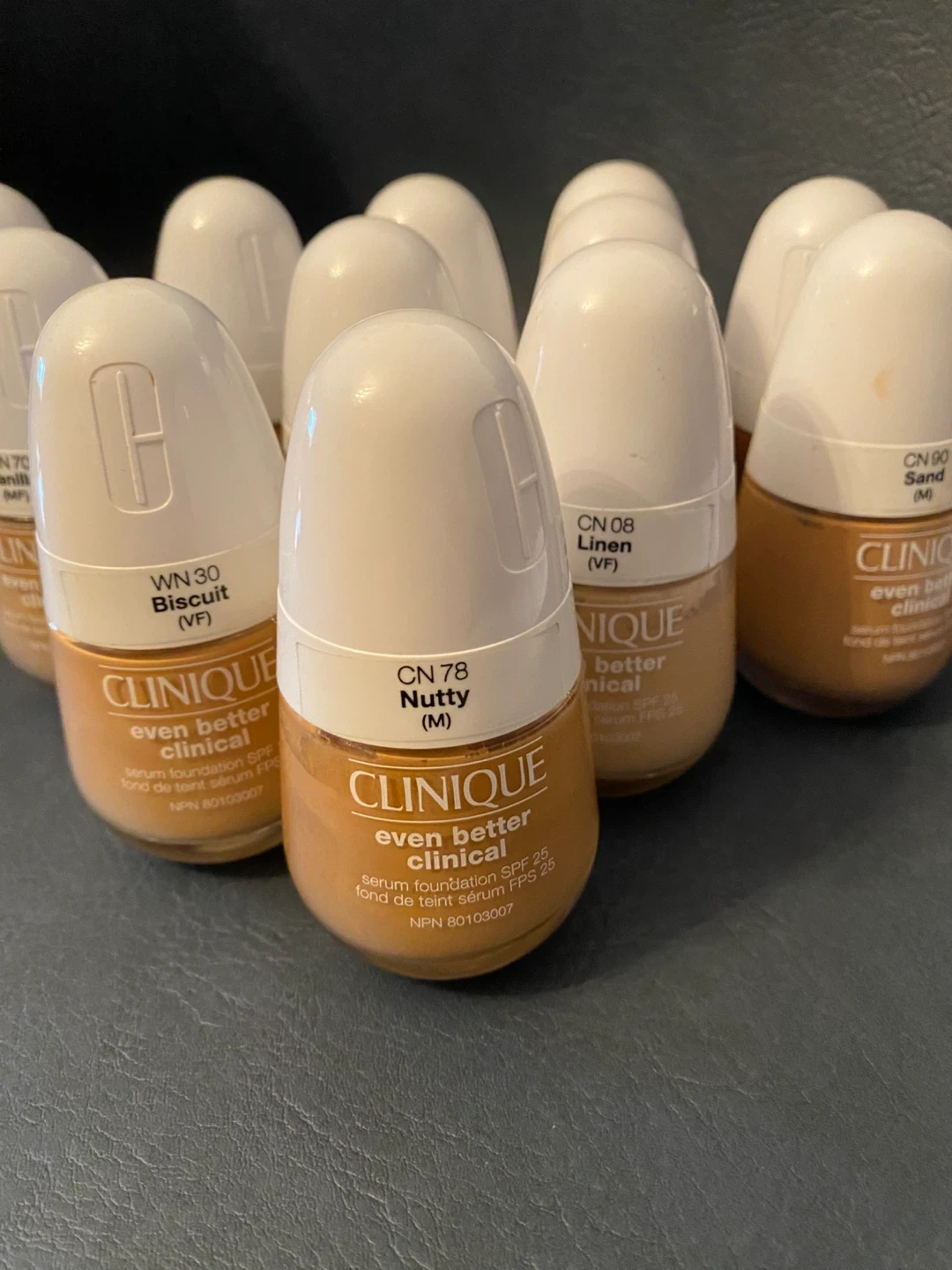 Clinique Even Better Clinical Serum Foundation SPF 25. This foundation is formulated with serum ingredients and SPF 25. It's available in various shades including CN 08 Linen, WN 12 Meringue, CN 78 Nutty, CN 90 Sand, WN 94 Neutral, WN 12 Meringue, CN 70 Vanilla, WN 30 Biscuit, WN 54 Honey Wheat, and WN 98 Cream Caramel.