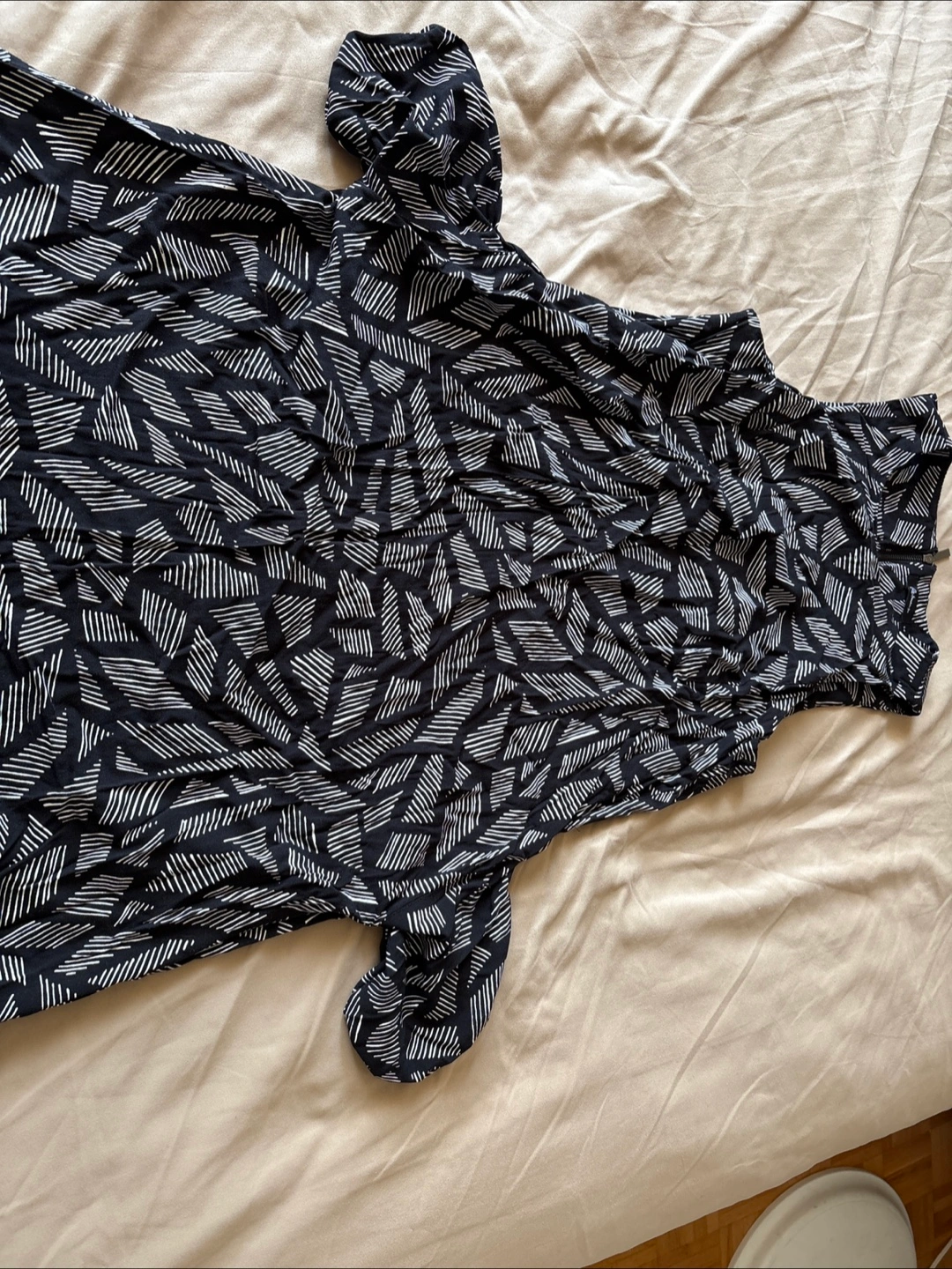 Cute Reitmans dress with a black and white print! It's a size small and in great condition. Perfect for a casual day out or dressing up for an evening event. A fun addition to any wardrobe! 3rd photo shows the 2side pockets inside out.