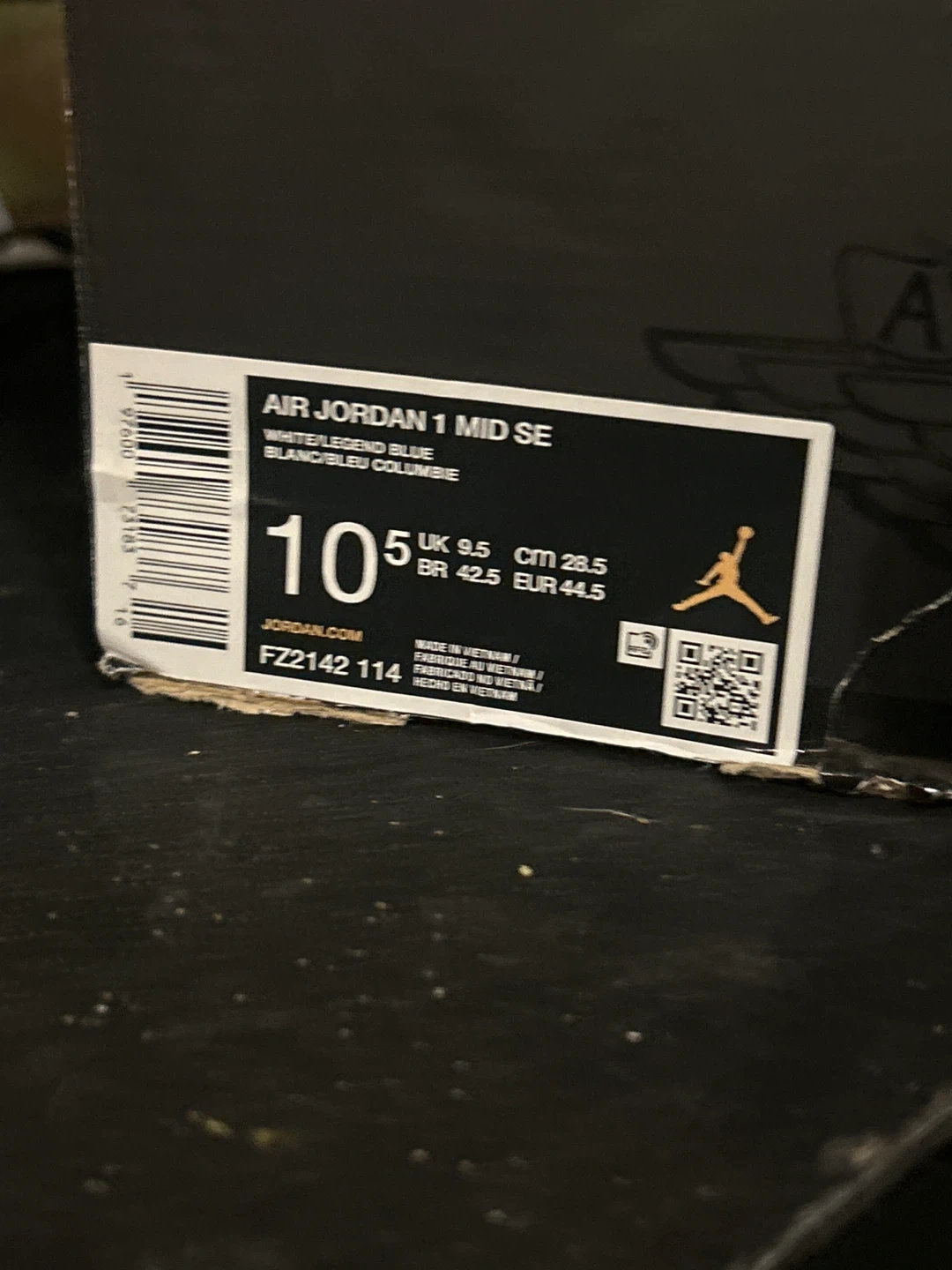 Classic Air Jordan 1 Mid SE sneakers in a clean white and University Blue colourway. Size 10.5 US men's. These kicks offer iconic style and comfort. Includes original box. Only worn once in the house I’d try them on.