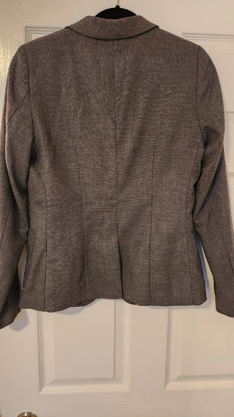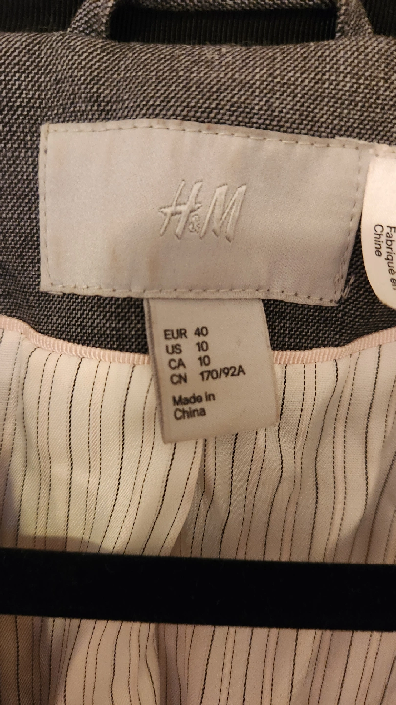 Gray with fine pin stripes,H&M blazer in size 10. Single button, flat front pockets. It's a stylish blazer with a classic look.
