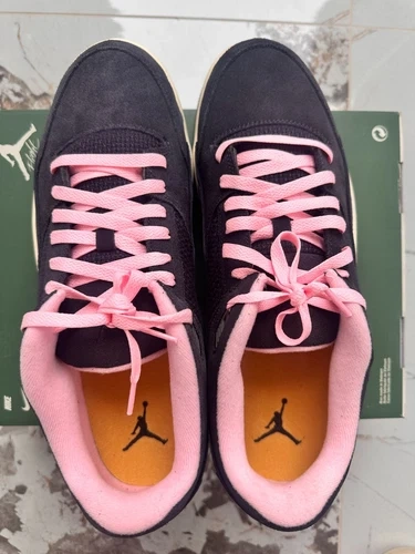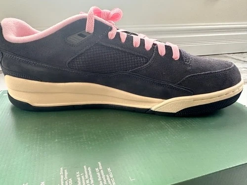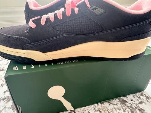 Elevate your game with the Nike Jordan Flight Court Neapolitan. The sleek black design is accented by the distinctive Flight Court Neapolitan stripes, offering a versatile look that transitions effortlessly from the court to the streets. Crafted for the discerning man, this pair comes in a generous US size 13, ensuring a comfortable fit for those with larger feet. These kicks are engineered with Nike's renowned craftsmanship, originating from Vietnam, and feature the style code HF3255-012. The UK equivalent size 12 corresponds to the US size 13. The shoe was purchased from an outlet store, is new and never worn. The box does not come with the top cover as pictured, and the box shows signs of damage.