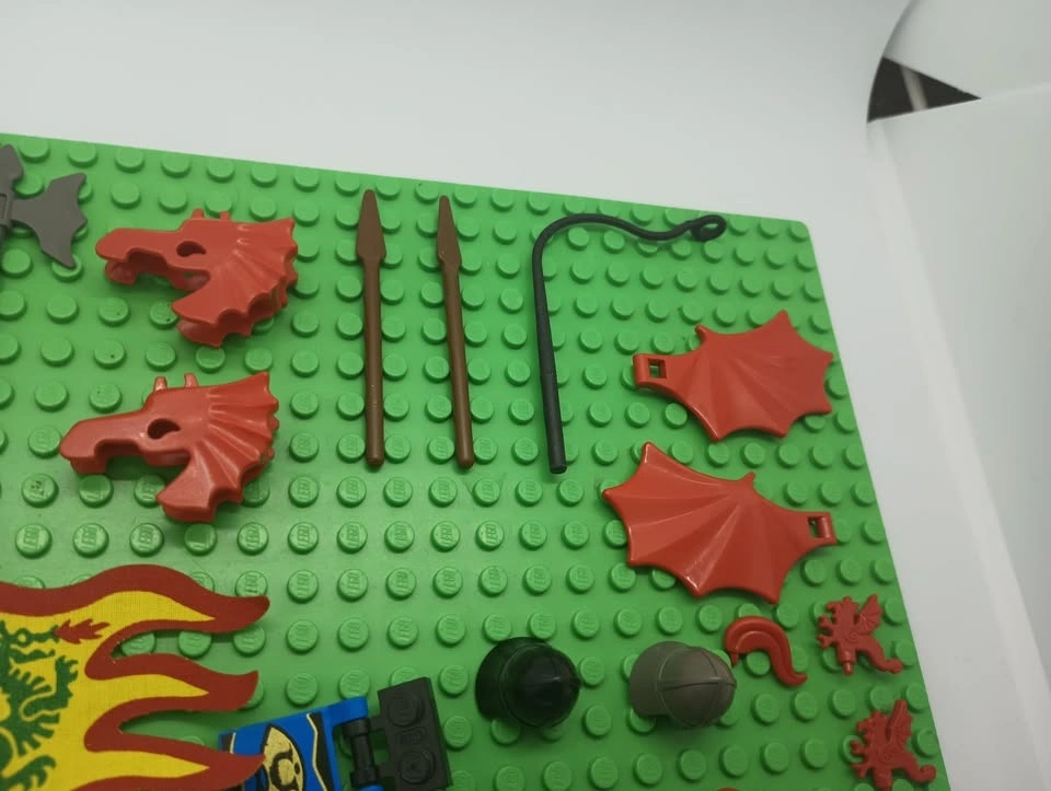 Lot of vintage Lego Castle and vintage Lego Ninja sets minifigs and other specialty pieces including flags, shields, head gear, spears, halberds and other pieces. At least one of these minifigs is considered rare and goes for over $40 avg on Bricklink and a few others and the larger fabric flags are worth about $20 on Bricklink.