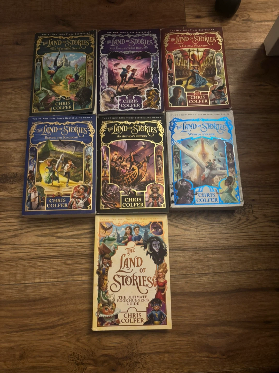 Land of Stories Series, only read once each. The bonus book has information about all the characters + pictures inside!