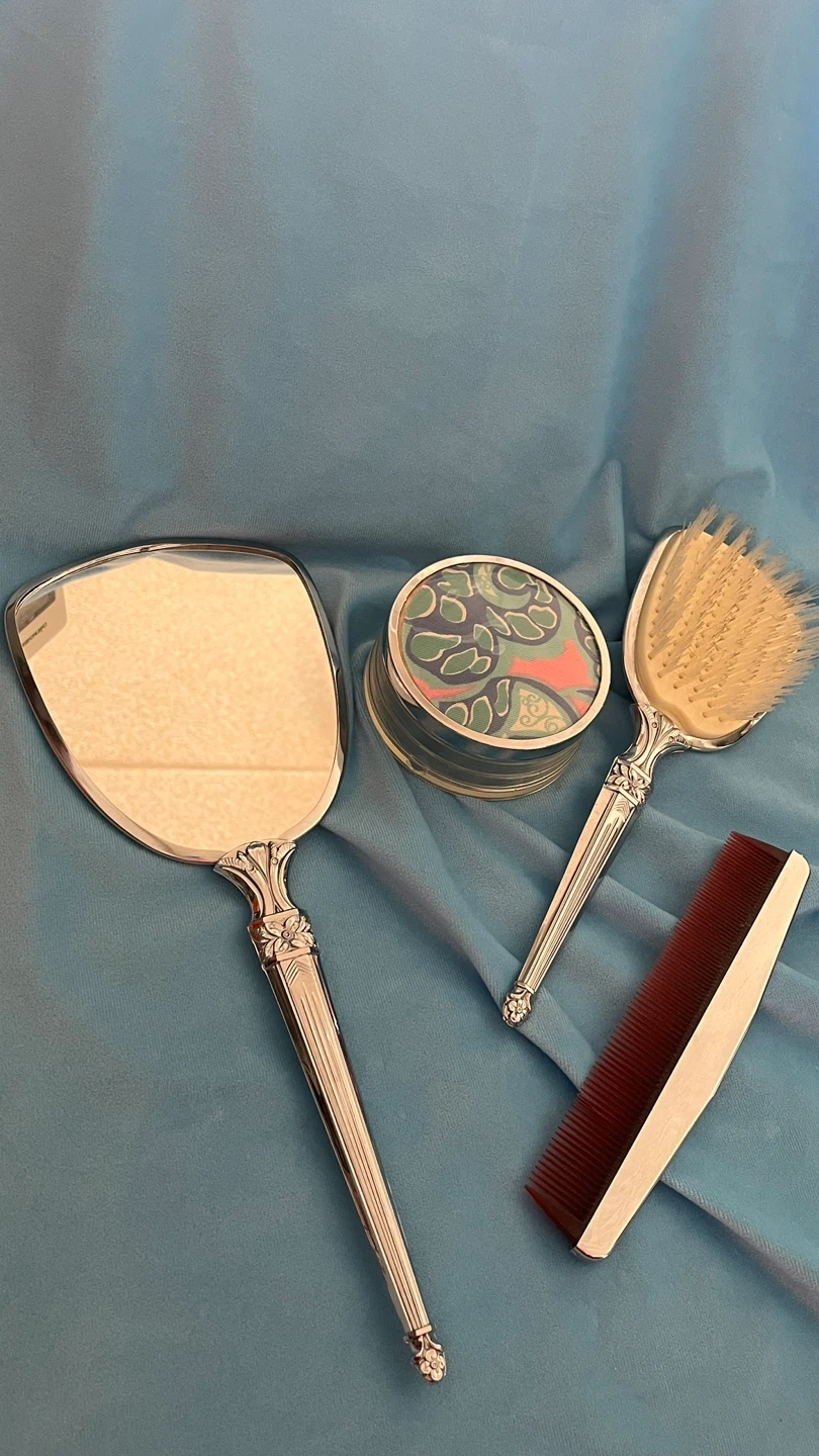 Vintage Vanity Set - Hand Mirror, Brush, Comb, and Powder Case