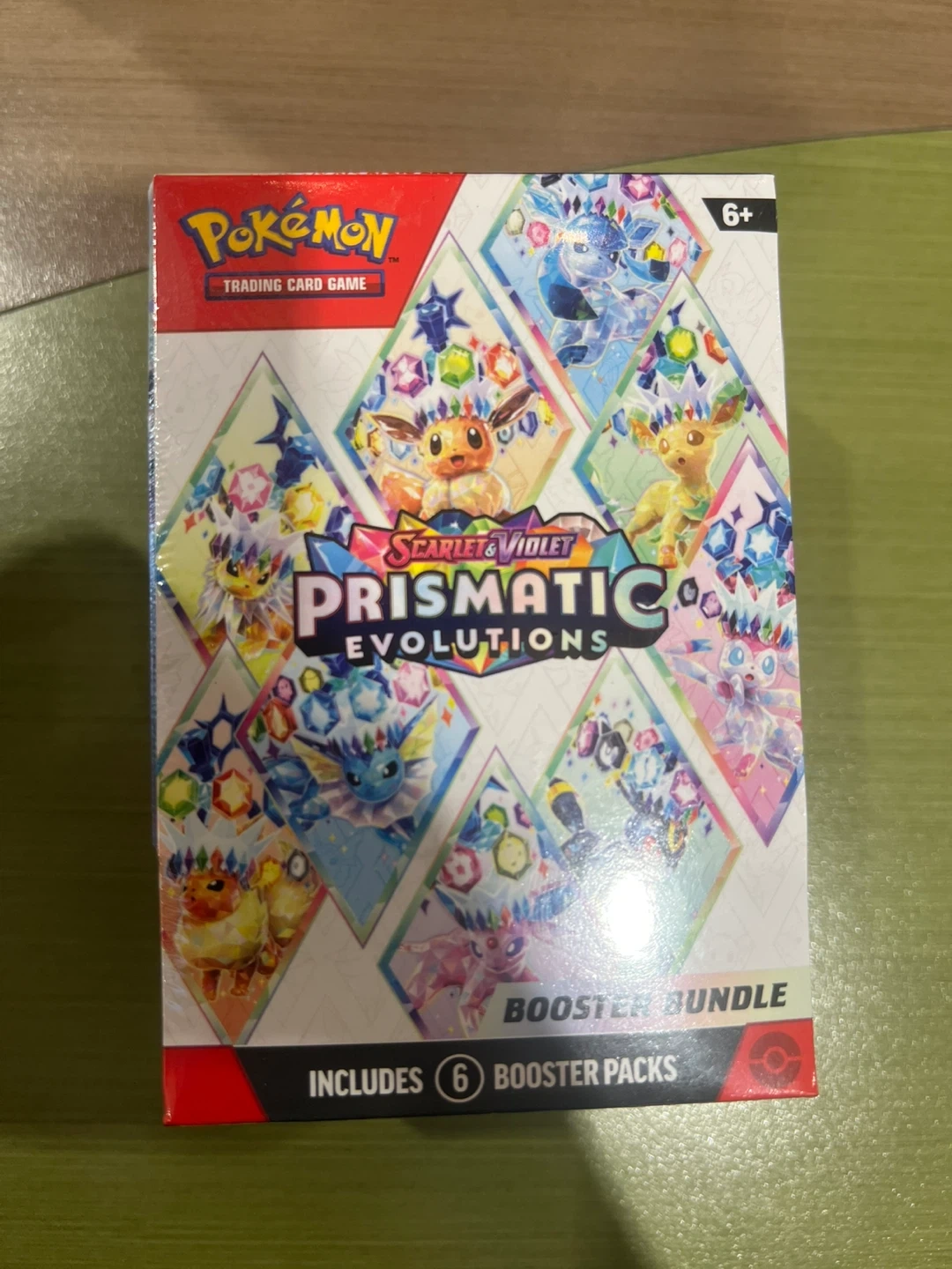 This Pokémon Trading Card Game Booster Bundle is from the Scarlet & Violet Prismatic Evolutions series. It includes 6 booster packs. Recommended for ages 6 and up.