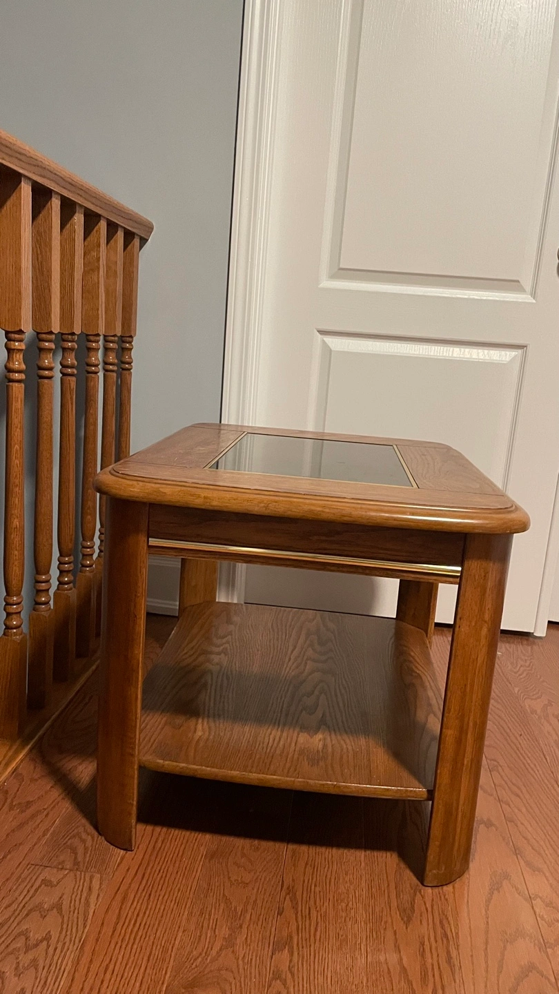 Wooden End Table with Glass Top (set of 2)