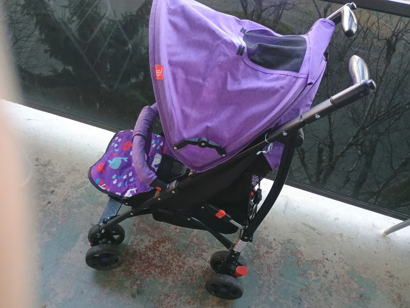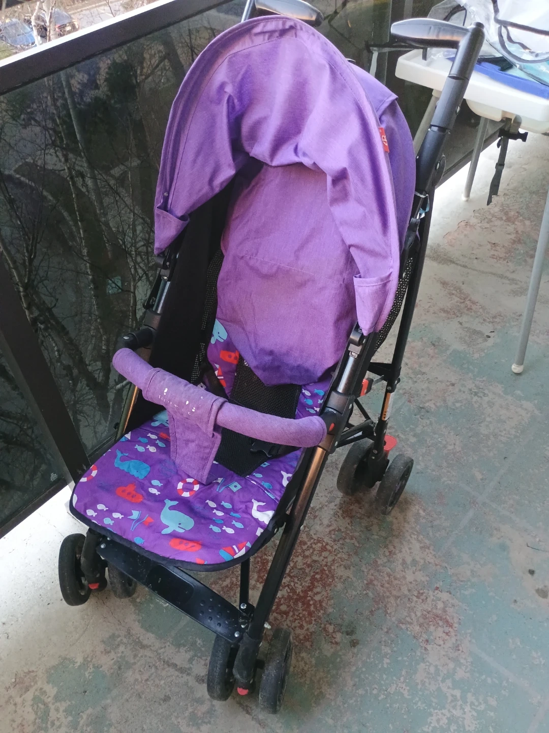 Purple Stroller with Fish Pattern