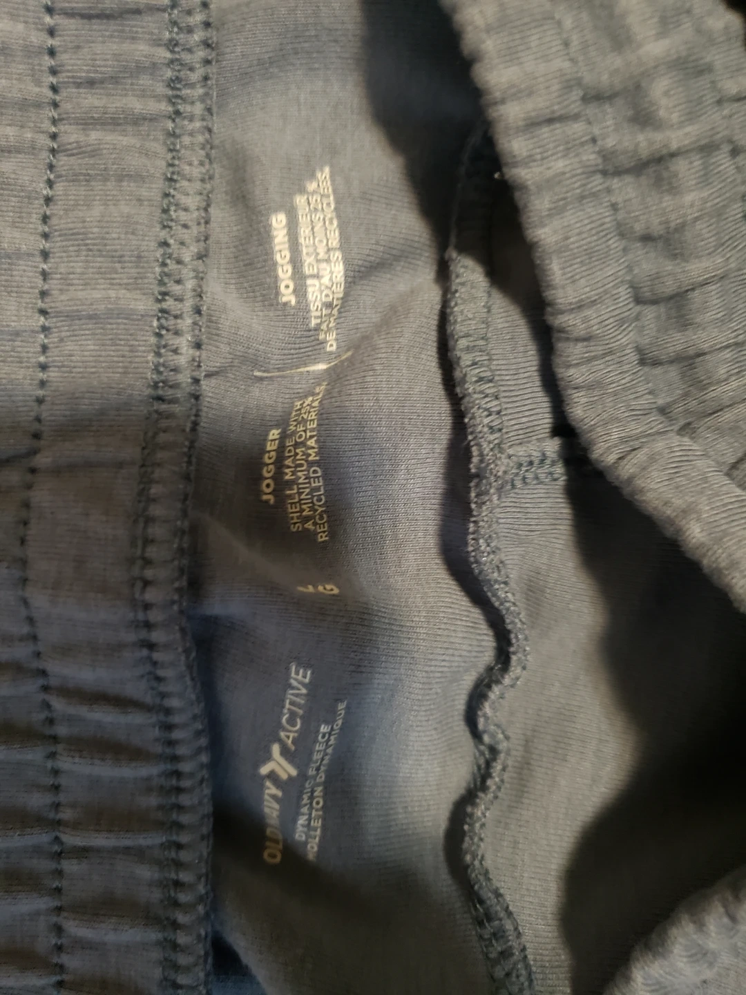 Old Navy Active joggers in a blue colour. Made with dynamic fleece. Zippered pocket on the side. Size Large.