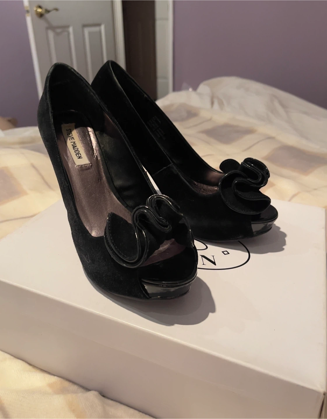 Selling a pair of Steve Madden Angylina heels in black! They are a size 8.5 and come with the original box. These stylish heels would be a great addition to your wardrobe!