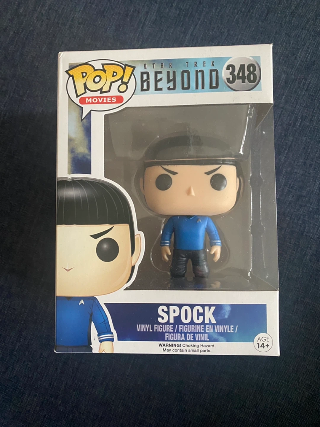 This is a Funko Pop! vinyl figure of Spock from Star Trek Beyond. It's model number 348. The figure is recommended for ages 14 and up.