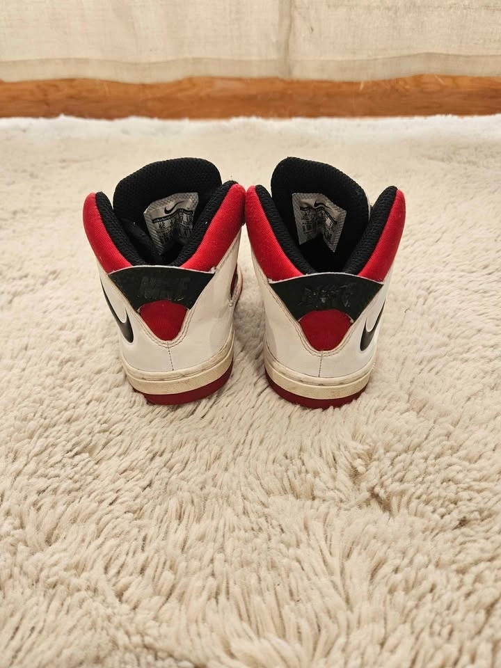 Red, white, and black high-top style.