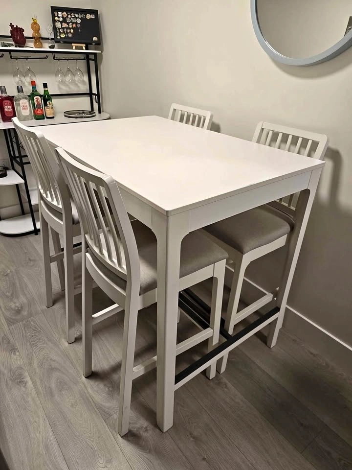 IKEA EKEDALEN White Counter Height Dining Set with 4 Chairs