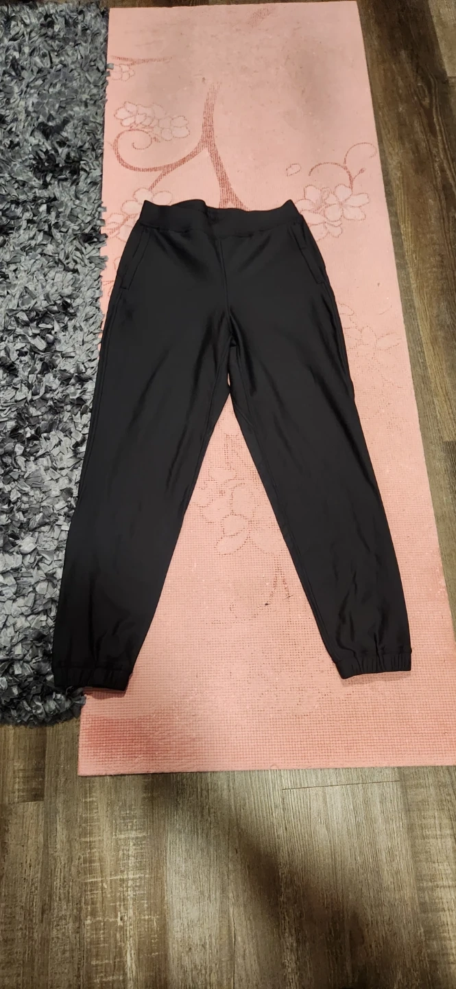 Designed in Vancouver, these black track pants are made from 82% Nylon and 18% Lycra elastane. They feature pockets and a comfortable fit. Perfect for athletic activities or casual wear!