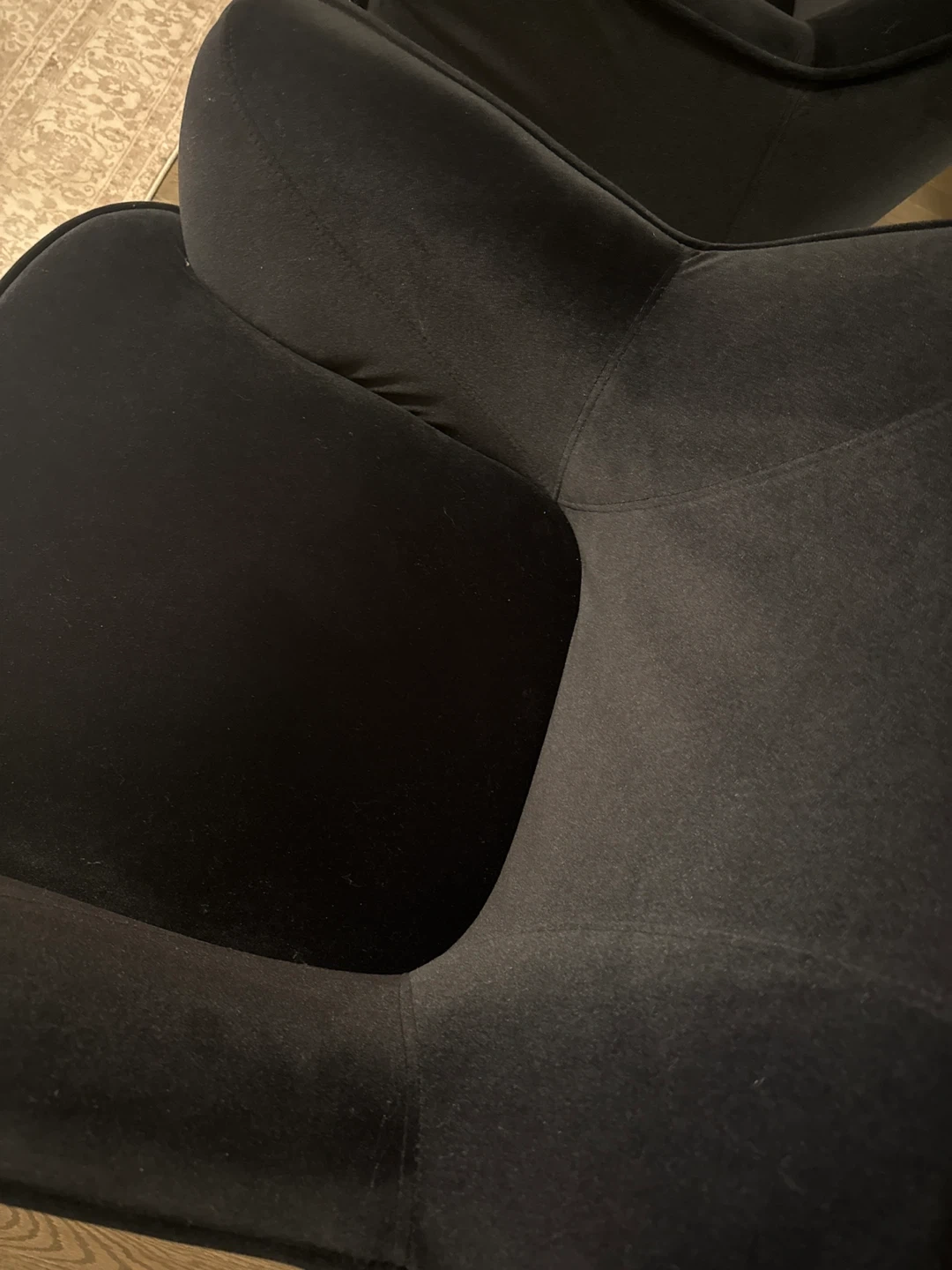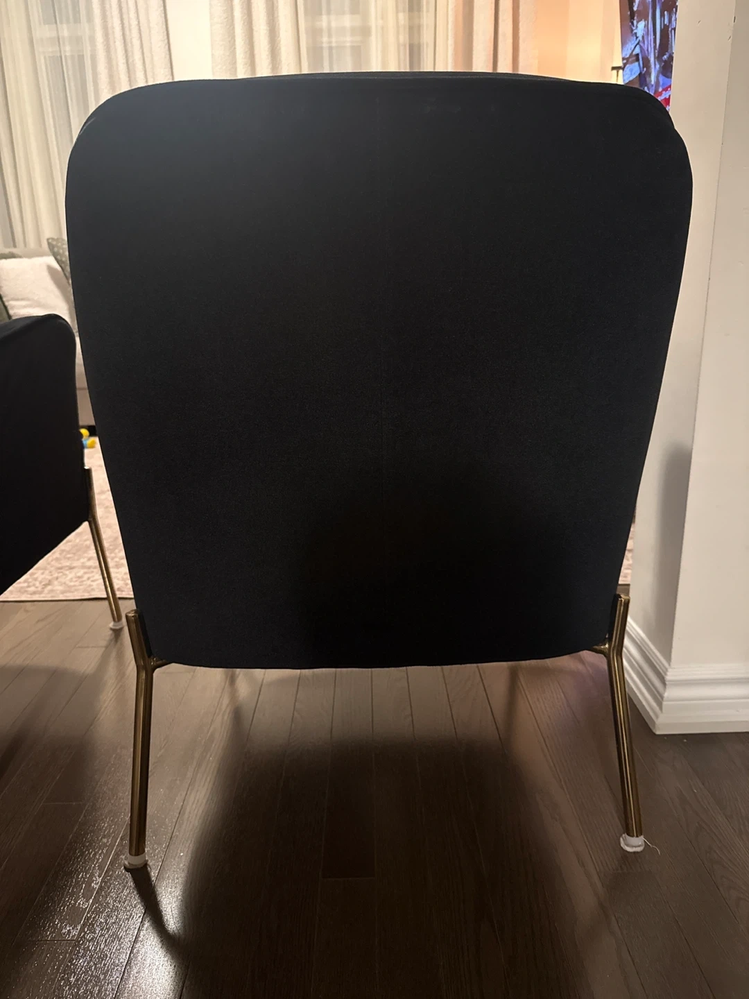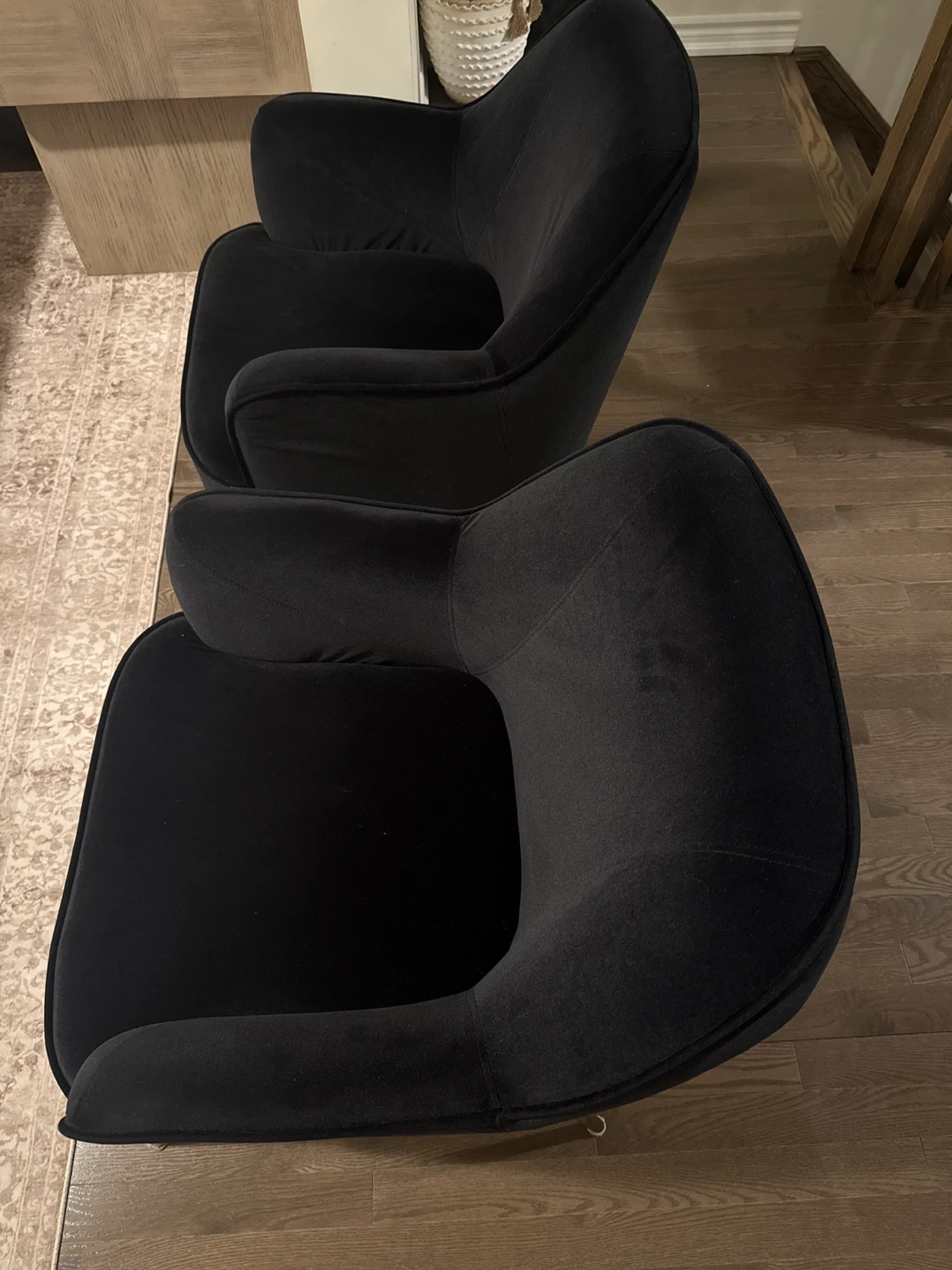 Selling a beautiful set of two black suede chairs that bring a touch of elegance and sophistication to any space. Upholstered in soft, luxurious suede, these chairs are complemented by sleek gold-tone legs that add a modern and stylish accent. Perfect for a living room, bedroom, or office, they offer both comfort and visual appeal. Gently used and well maintained, they’re a great addition for anyone looking to elevate their décor.