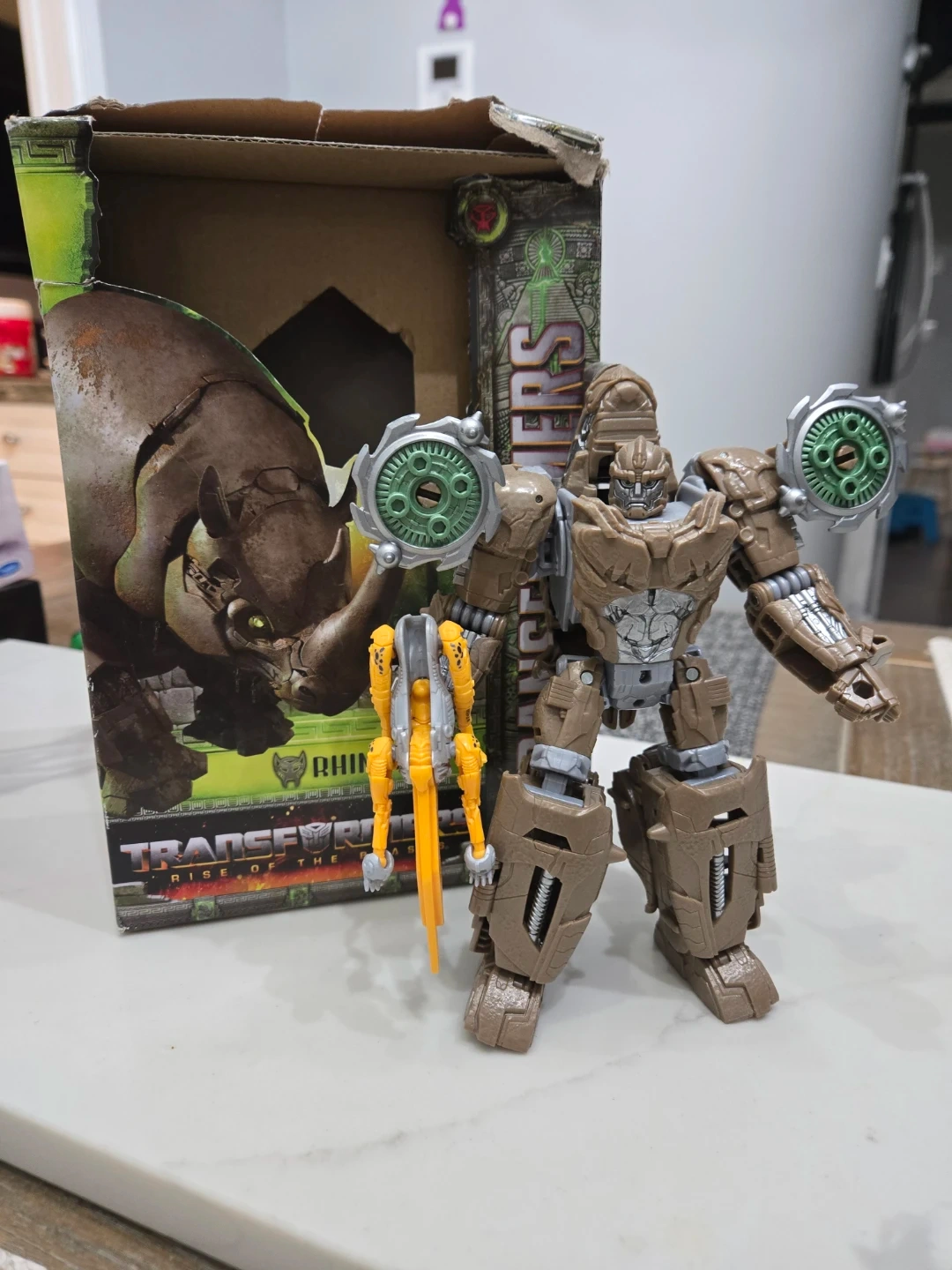 Rhinox comes with box and all weapons accessories. Box is damage.