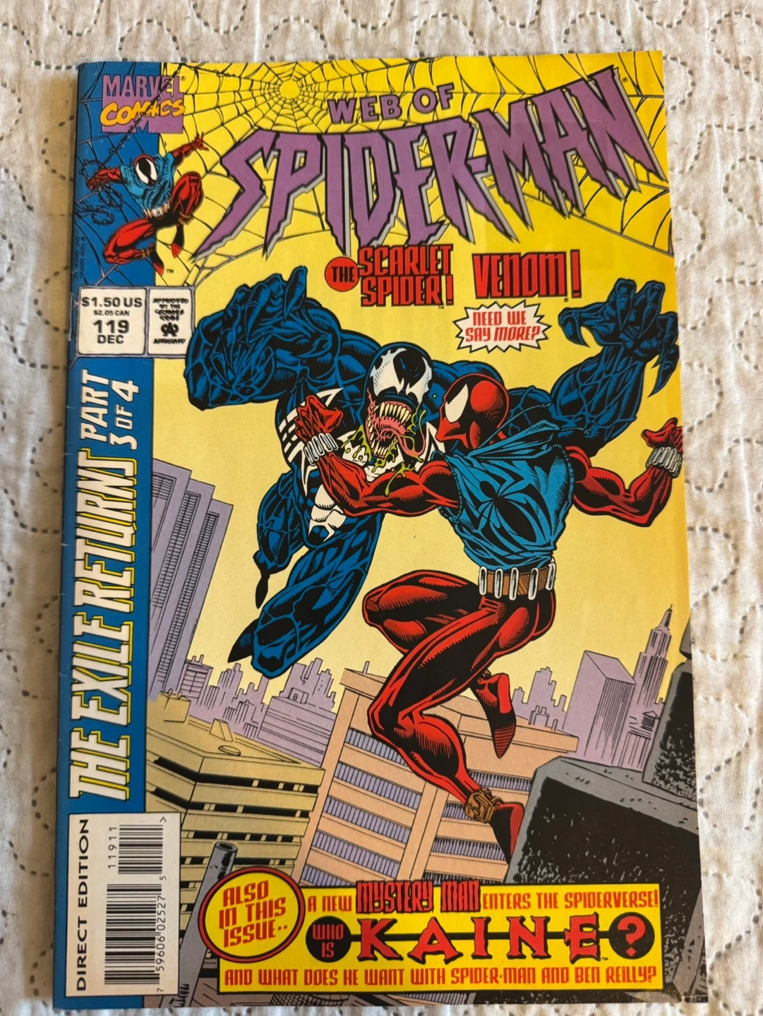 Two key issues of Marvel's Web of Spider-Man comics Features issue #118 First appearance of Scarlet Spider and issue #119 First appearance of Kane. Both Direct edition 1994 Marvel.