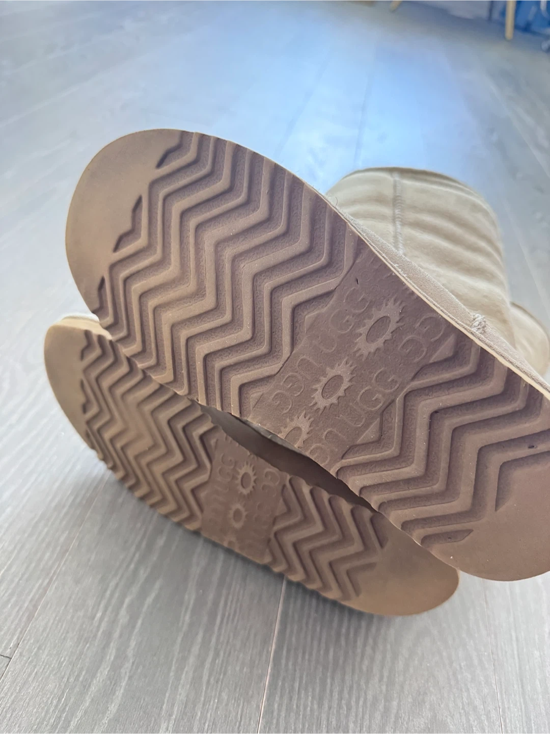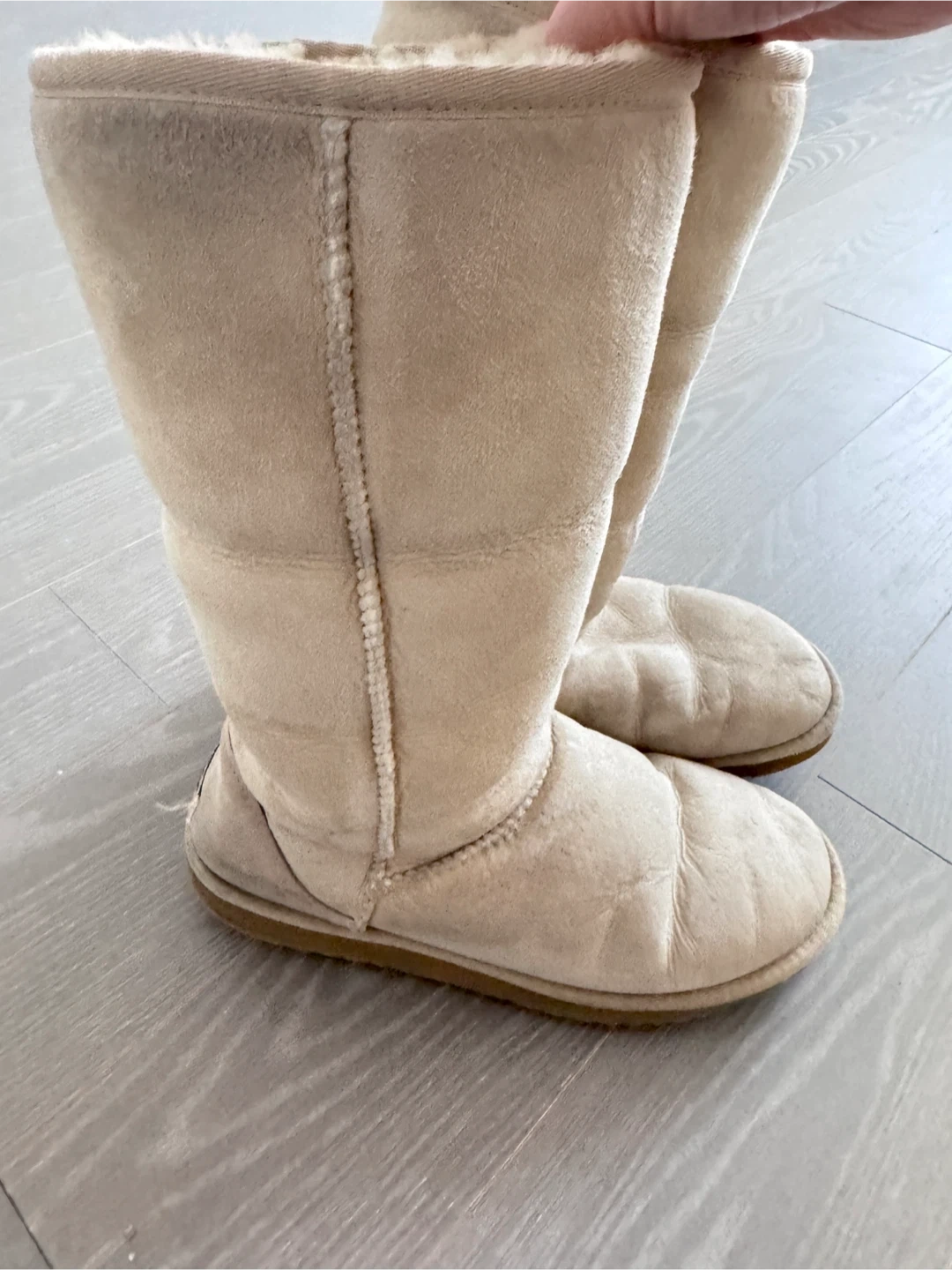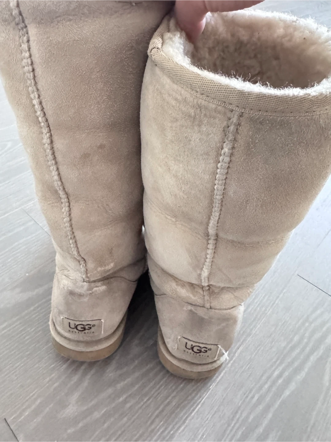 Selling a pair of UGG Classic Tall boots in a women's size 8. They have some wear and could use a bit of cleaning, but they're still cozy and warm for the winter months!