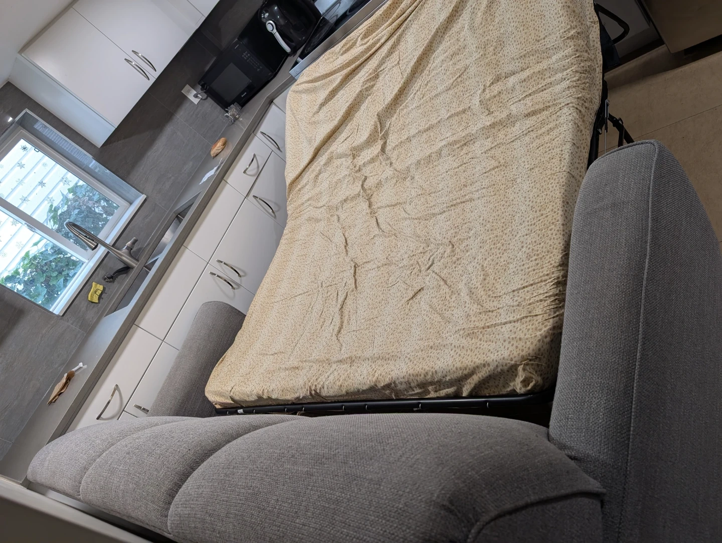Grey Sofa Bed with Pull-Out Mattress