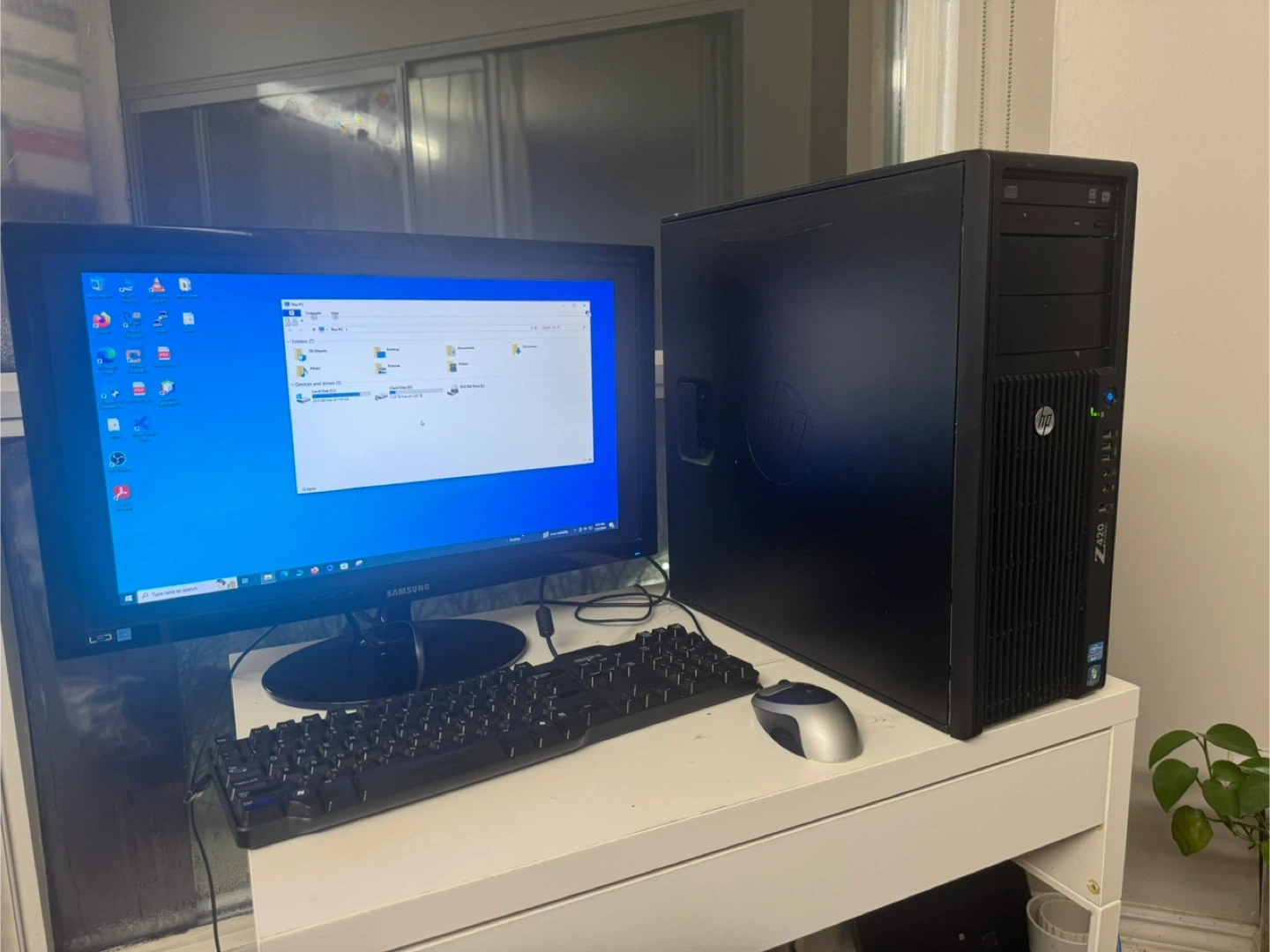 Fully loaded workstation great for gaming station too with accelerated speed and graphics card. HP Z420 Workstation computer with a Samsung monitor, keyboard, and mouse. It has a 110 GB local disk and a 3.63 TB client data drive. Includes Intel Xeon CPU E5-1650 processor. Sapphire Nitro+ Radeon RX 590 8GB Special Edition graphics card, It features 8GB of GDDR5 VRAM and a 256-bit bus width It has a core clock speed of up to 1560 MH