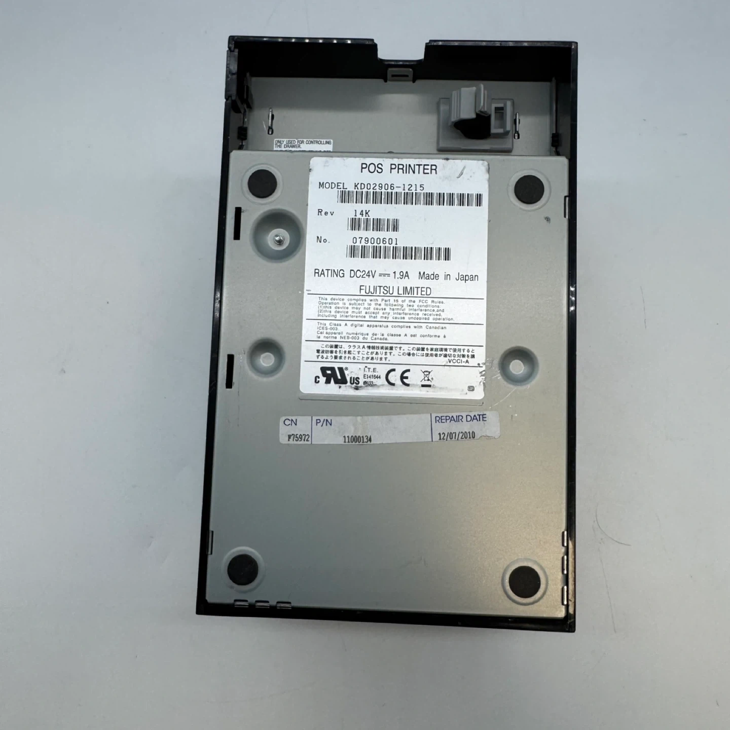 This is a Fujitsu POS Thermal Receipt Printer, model KD02906-1215, made in Japan.