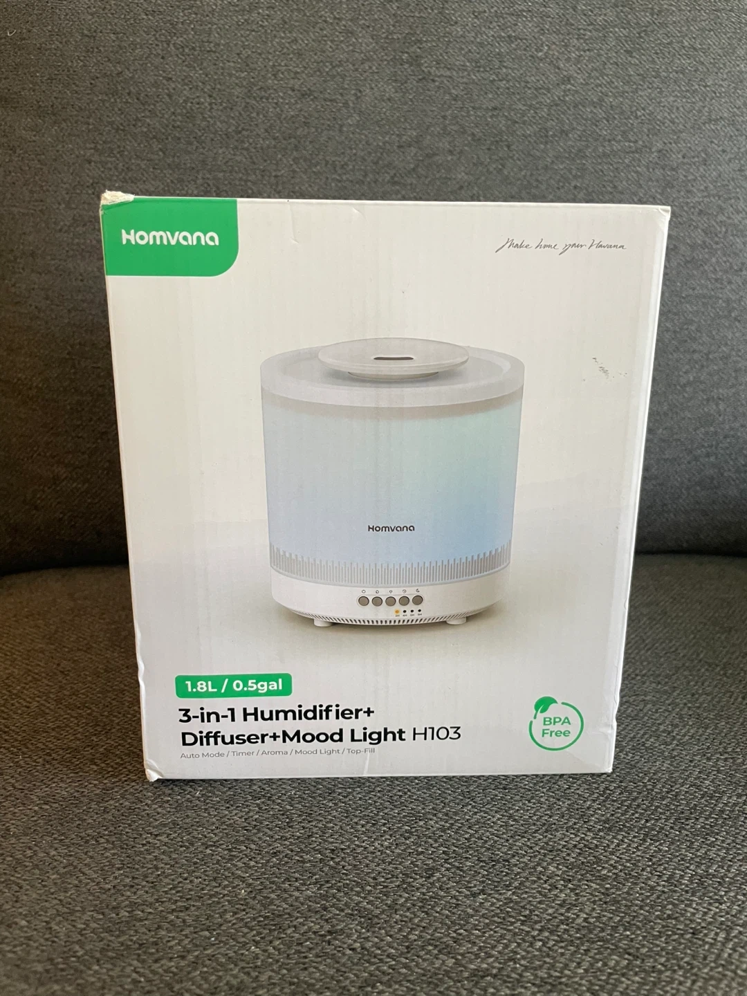 Homvana Humidifiers for Bedroom 1.8 L Top-Fill Cool Mist Humidifier for Baby Nursery Plants Kids Home, 3-IN-1 Diffuser with Night Light, Auto Mode, Esserntial Oil, BPA Free, 30H Working Time