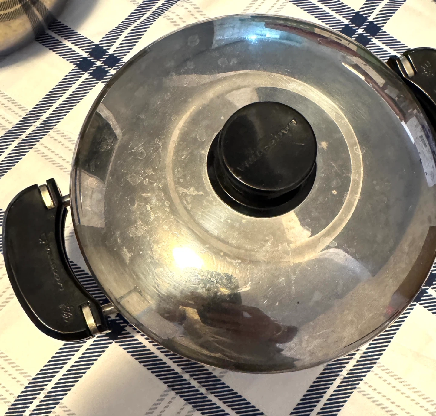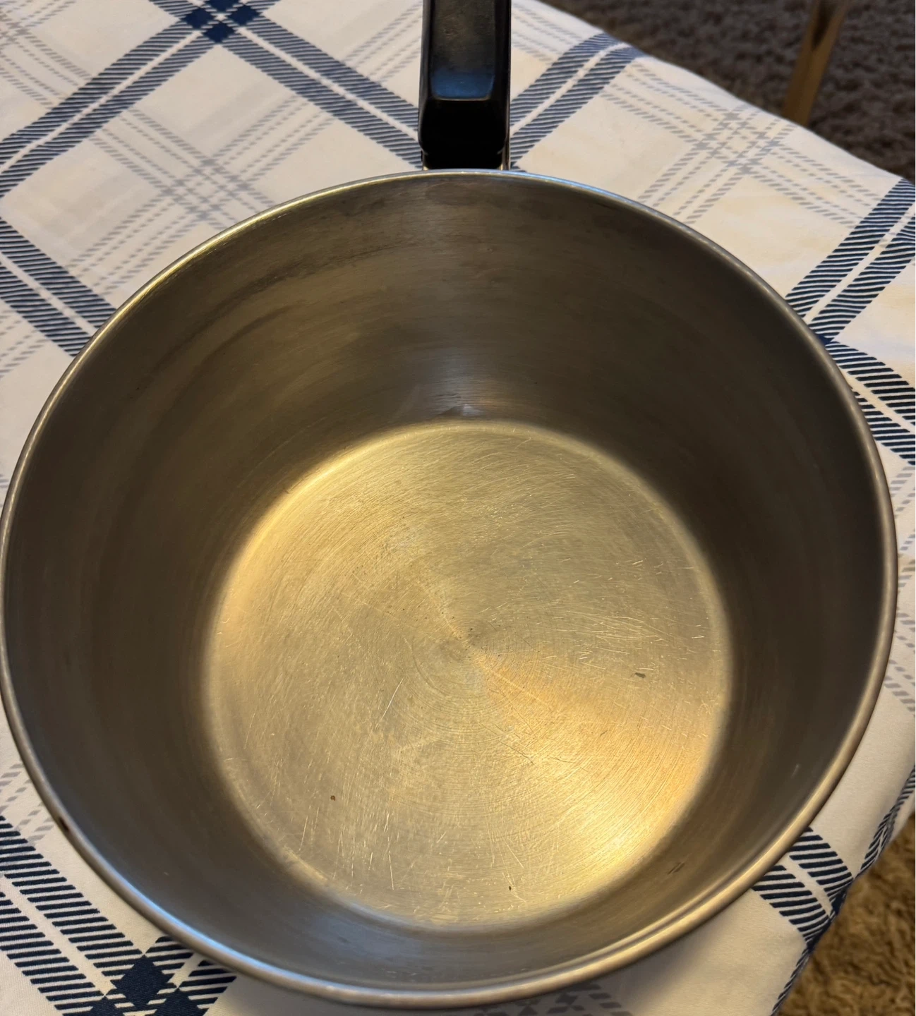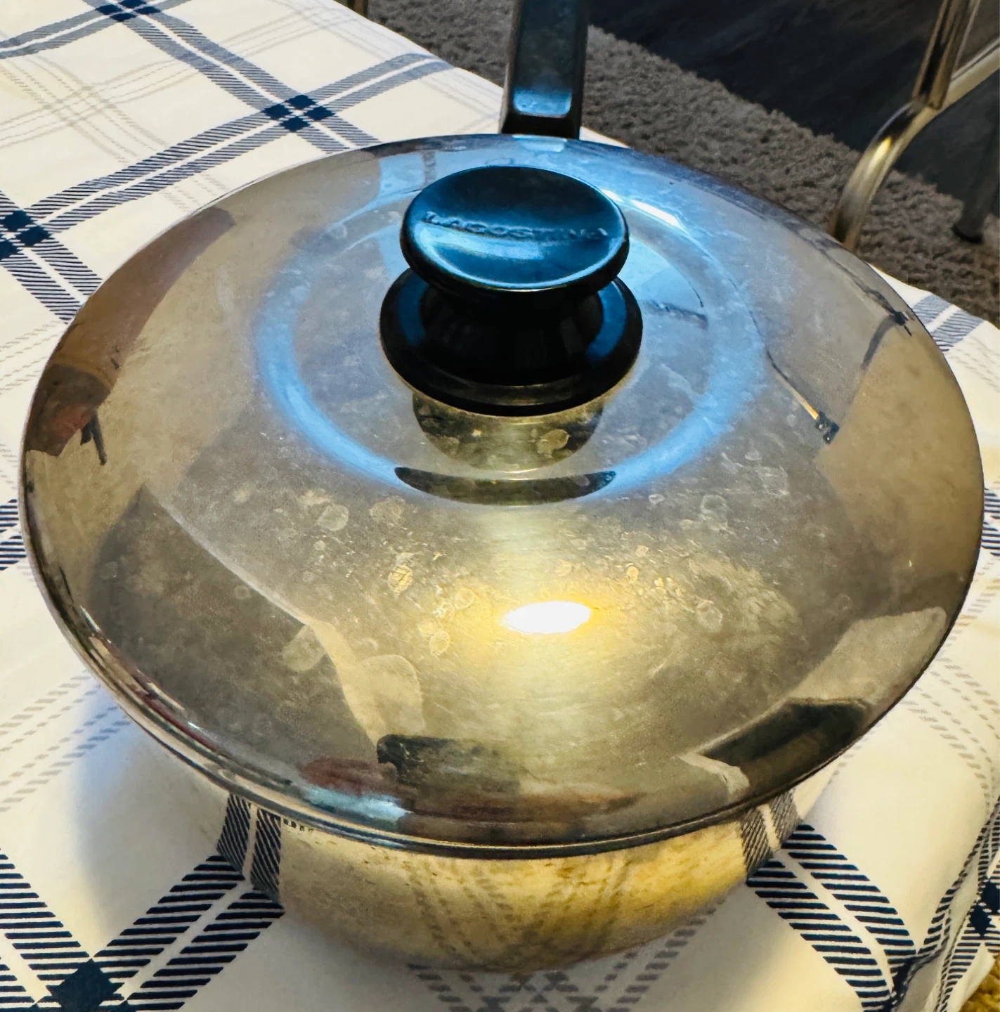 A stainless steel saucepan with a matching lid. Kitchen pots piece for everyday cooking.