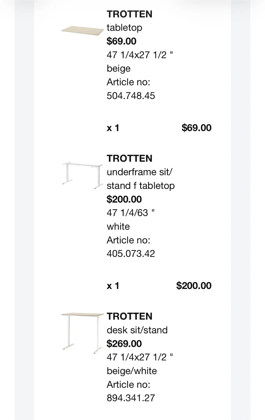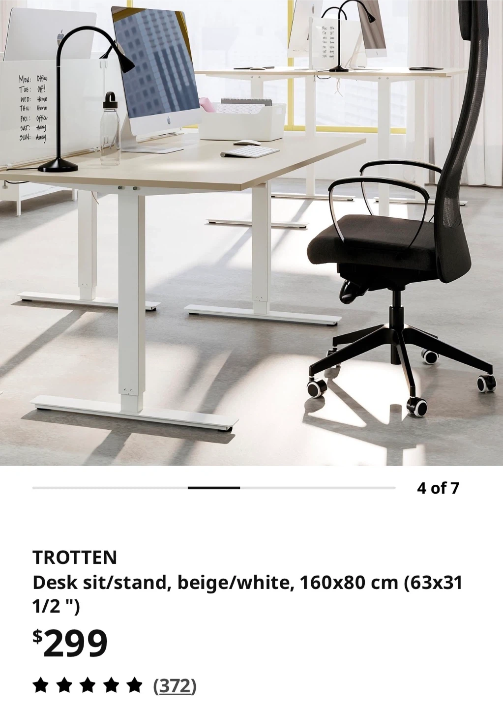 IKEA TROTTEN Sit/Stand Desk - Beige/White, 160x80 cm