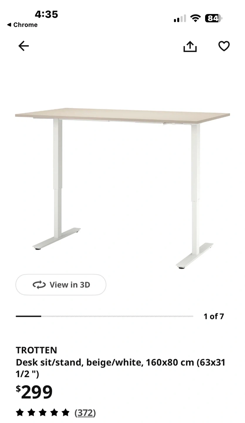 This is an IKEA TROTTEN sit/stand desk. It's beige and white and measures 120x70 cm. This desk allows for adjustable height to switch between sitting and standing. This one has a crank that doesn’t break like their motors.