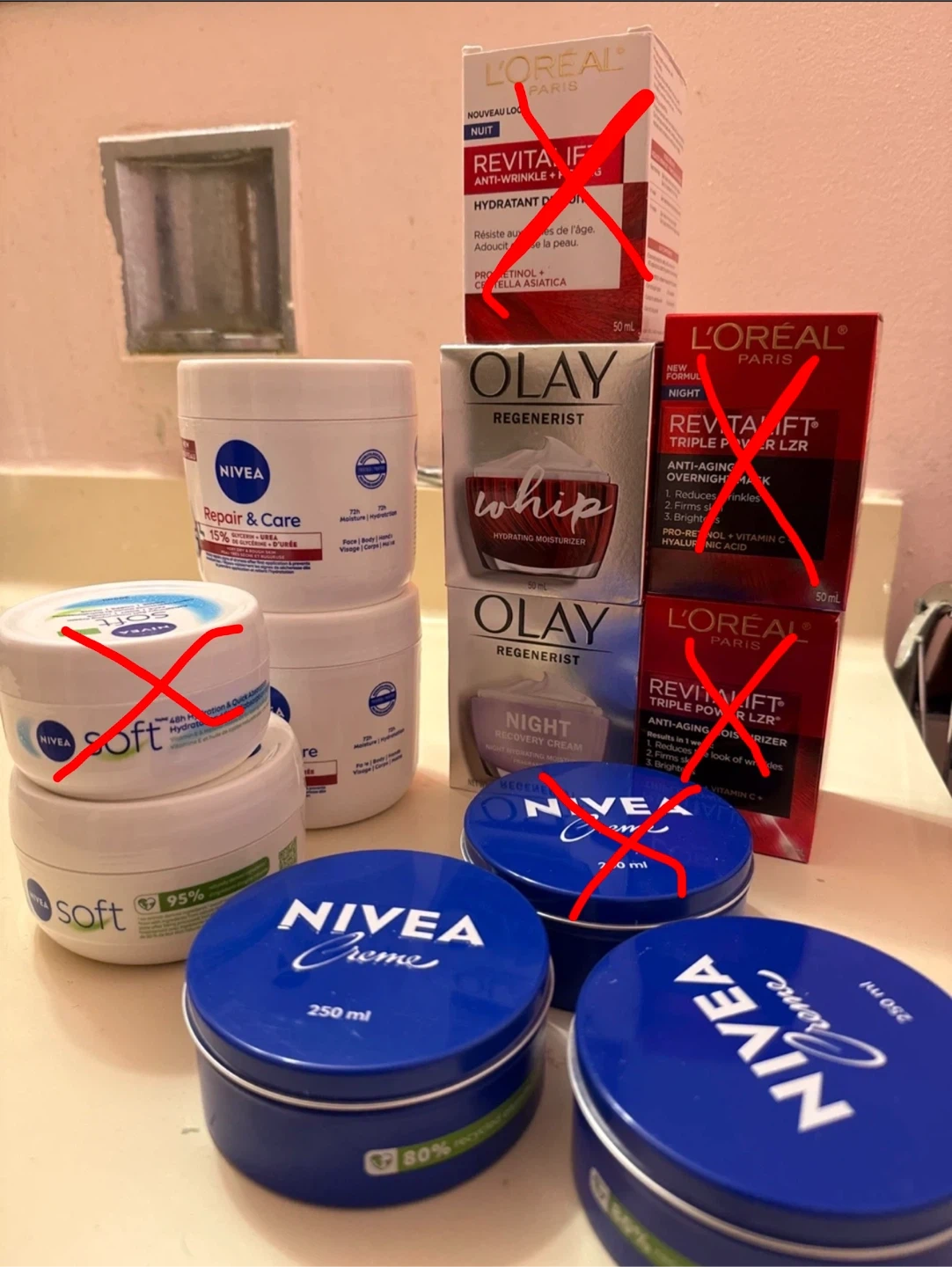 There’s Nivea Repair & Care, Nivea Soft, Nivea Creme, and Olay Regenerist.