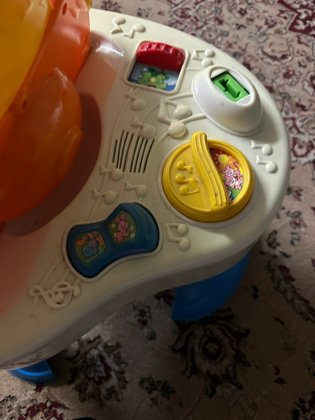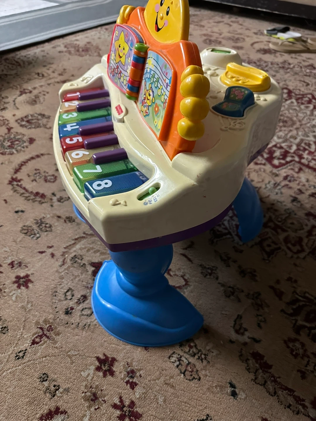 Fisher-Price Laugh & Learn baby grand piano. It has colourful keys with numbers and fun graphics. This toy encourages early musical learning and motor skills development. Suitable for infants and toddlers.