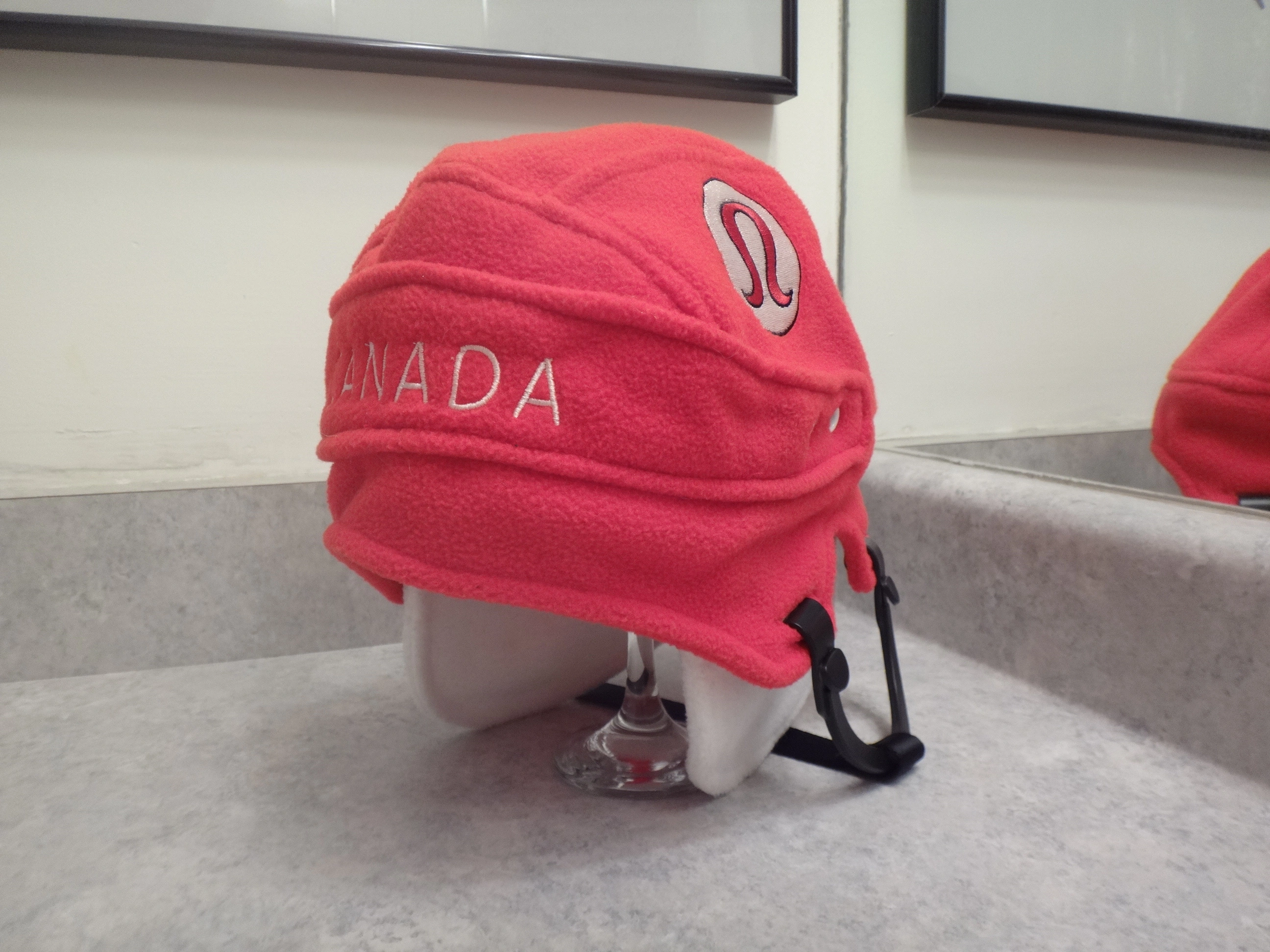 Rare unisex lululemon Team Canada hockey helmet style fleece winter toque hat.