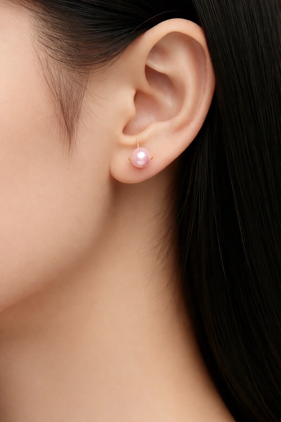 Beautiful pink freshwater pearl stud earrings set on solid 925 sterling silver posts. These pearls have a soft blush tone with natural luster, offering a refined, classic look that never goes out of style. Perfect for everyday elegance or formal wear.
