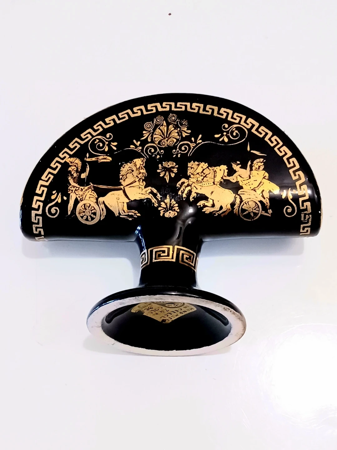 Design: Depicts Greek mythology scenes, Charioteers, accented with gold edging.