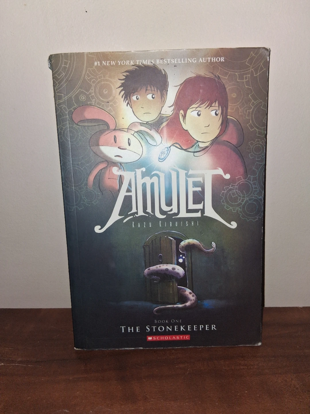 Amulet Book 1: The Stonekeeper graphic novel by Kazu Kibuishi. It's the first book in the series, written and illustrated by Kibuishi. This is a #1 New York Times Bestselling author's work. This book is perfect for young readers who enjoy fantasy and adventure stories.