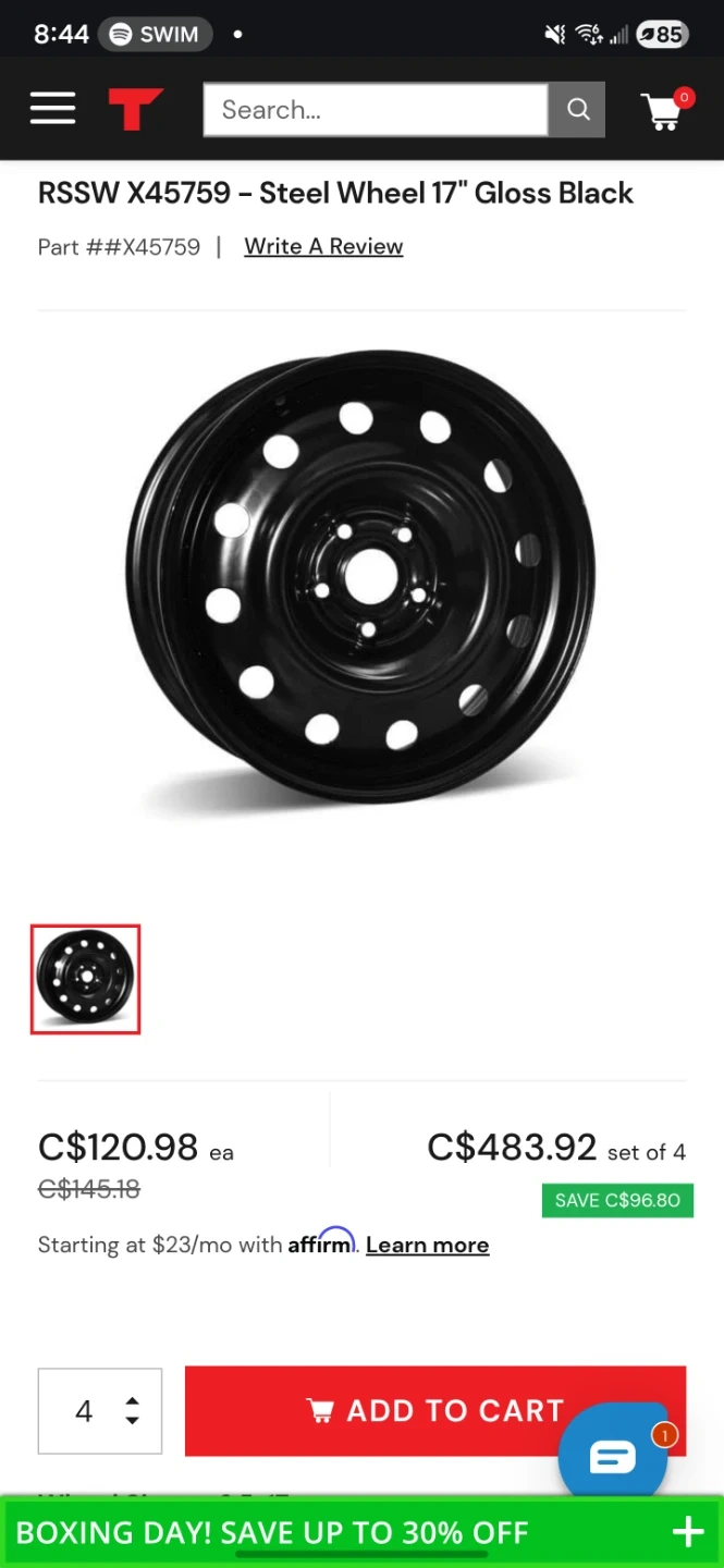 RSSW X45759 Steel Wheel 17" Gloss Black