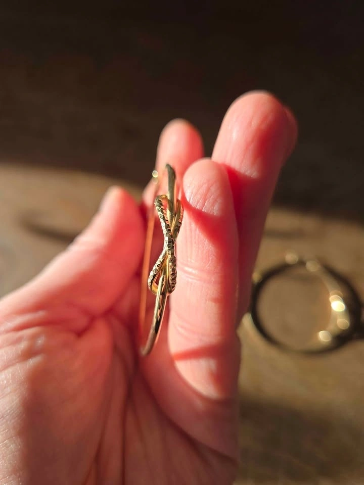 They feature an infinity loop detail at the front which has little hammered beveled edges that catch the light and glimmer.