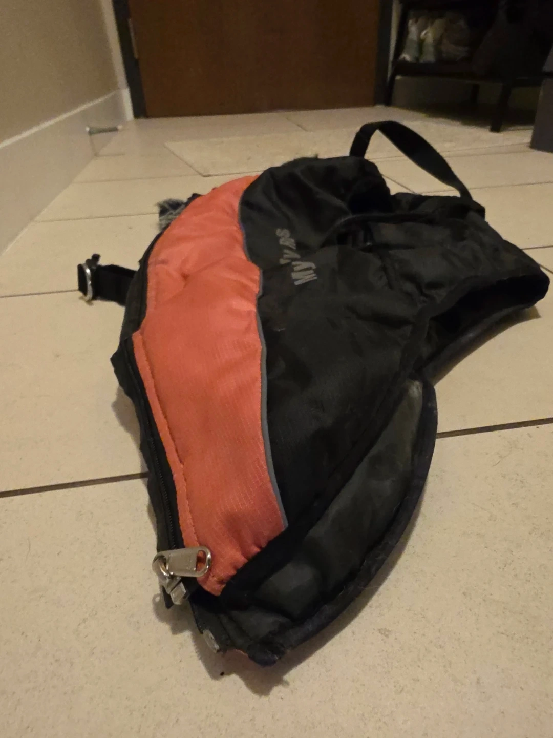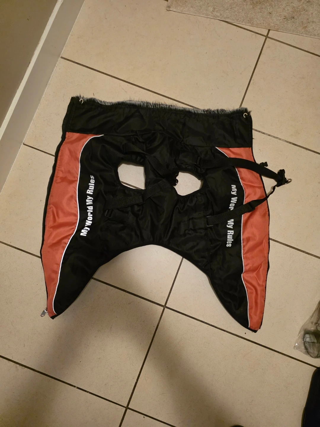 Selling a gently used dog parka with zipper. It's black with pink accents for medium to large sized dogs. Flexible belt with buckle to make size adjustments. Perfect for taking your furry friends on adventures!