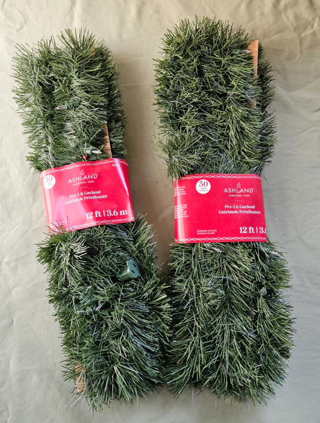 NEW Ashland Artificial Pine Pre-lit Garland Set of Two 12ft Each