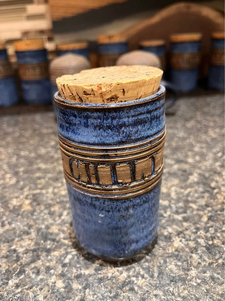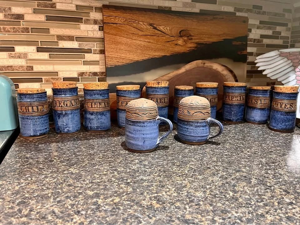 Handmade Blue Glazed Ceramic Spice Jars & Shakers (12 pcs)