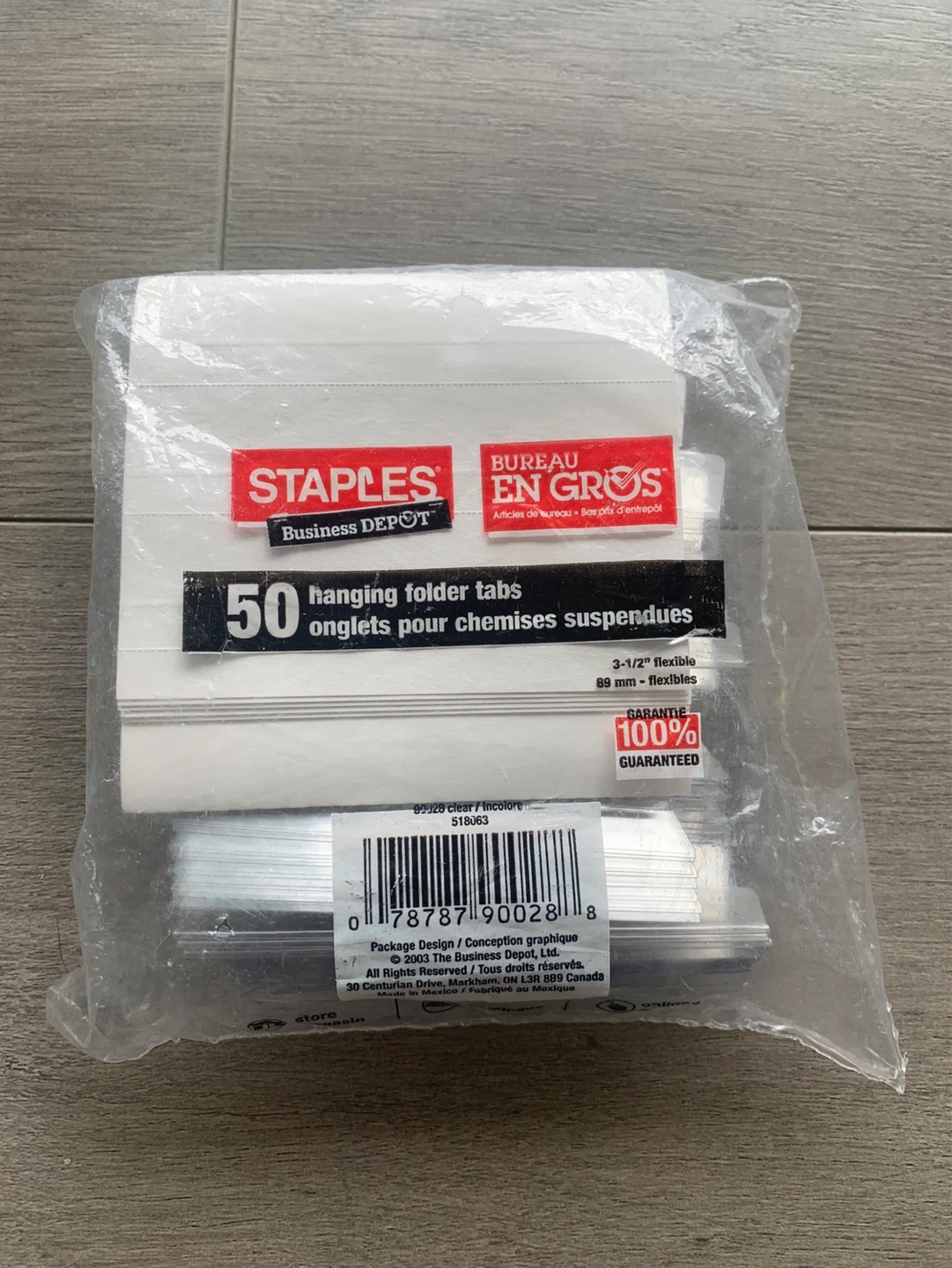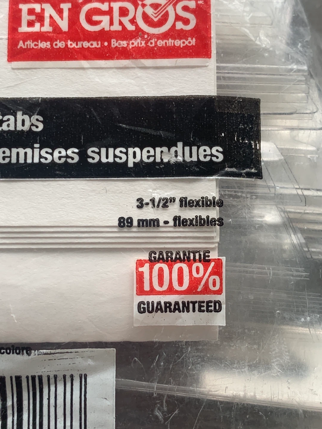 This package contains 50 flexible hanging folder tabs, each 3-1/2 inches wide. They're made of clear plastic for easy labelling. Tabs are 89 mm flexible. These tabs are essential for organizing any filing system!