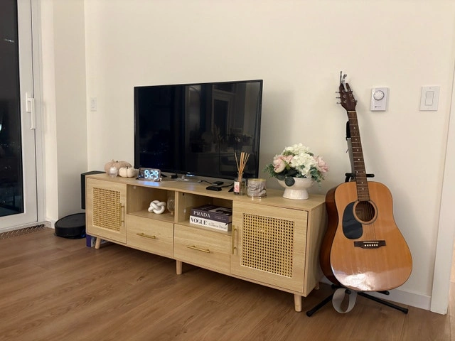 Stylish Beige TV Frame with Rattan Doors - 60" L