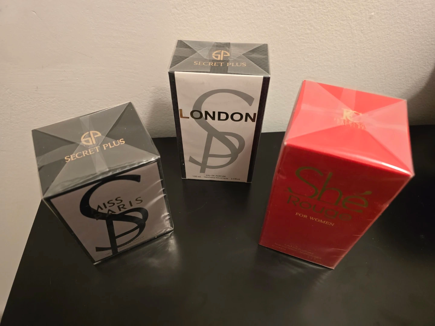 Three Eau de Parfum sprays for women. Includes Miss Paris, London, and She Rouge scents. Each bottle is 100ml (3.4 fl.oz.). Made in France. These fragrances are great for everyday wear or special occasions! These are from Fragrance Couture and Secret Plus.