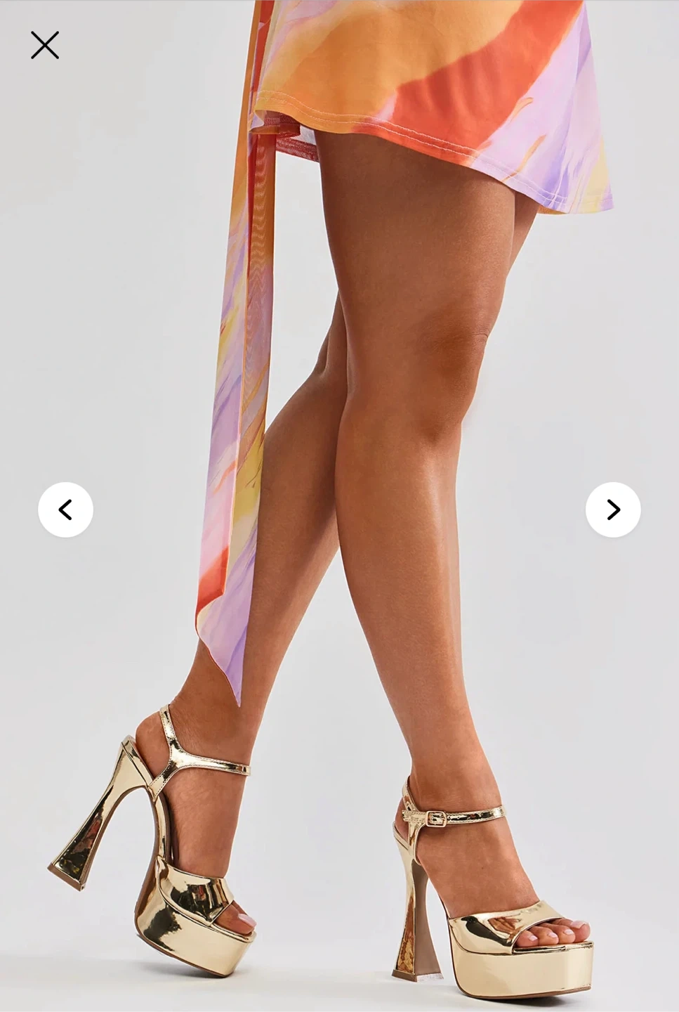 Fashion Nova Gold Platform Heels, Size 7.5